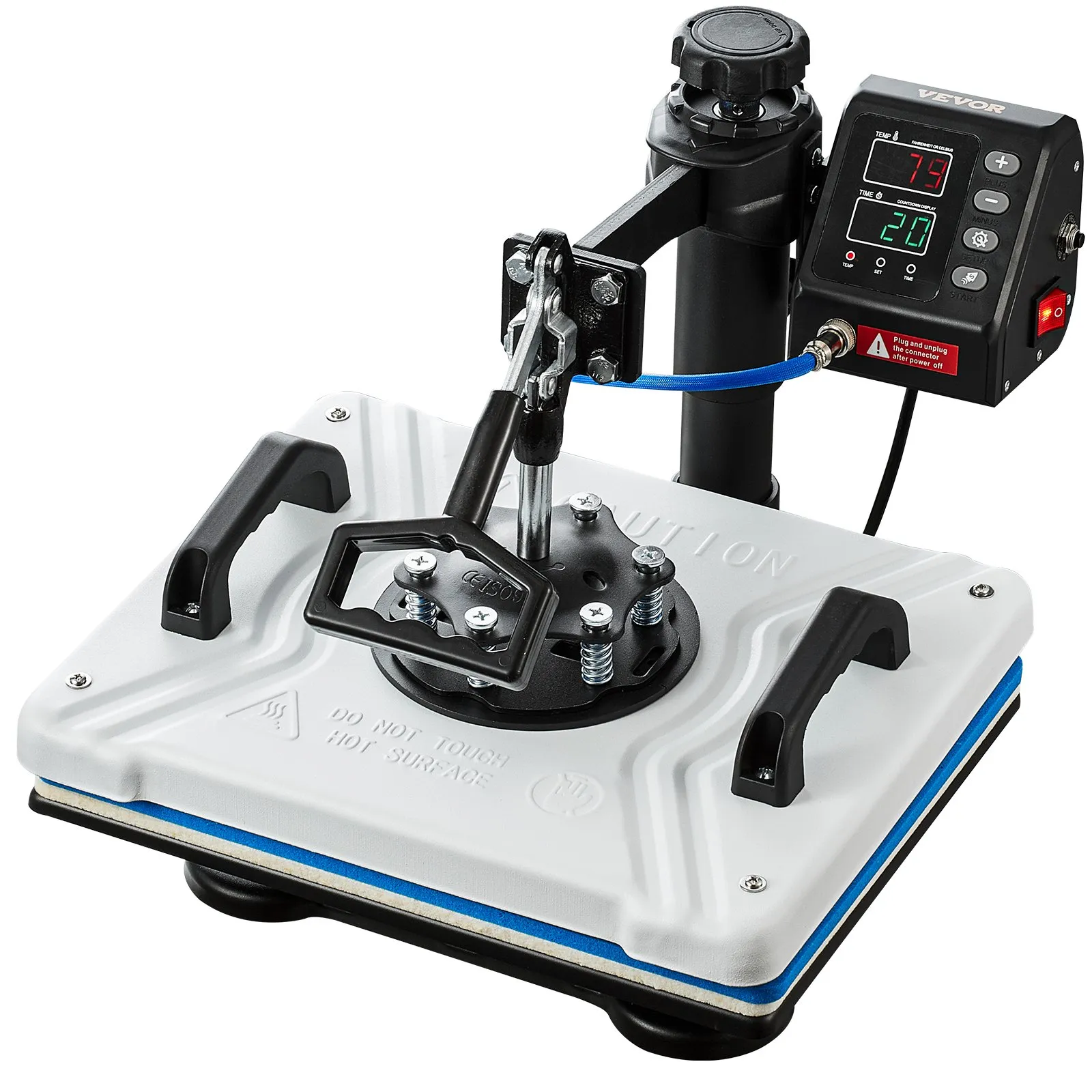 Otočenie o 360°: Vystužený rotačný hriadeľ z hliníkovej zliatiny zaisťuje plynulý chod a vysokú odolnosť. V porovnaní s bežnými kovmi zvyšuje hliníková zliatina odolnosť proti korózii o 28 %. Otočná konštrukcia lisu na tričká vás chráni pred možnými popáleninami od horúcej platne a poskytuje úplný prehľad o tlačenom dizajne.