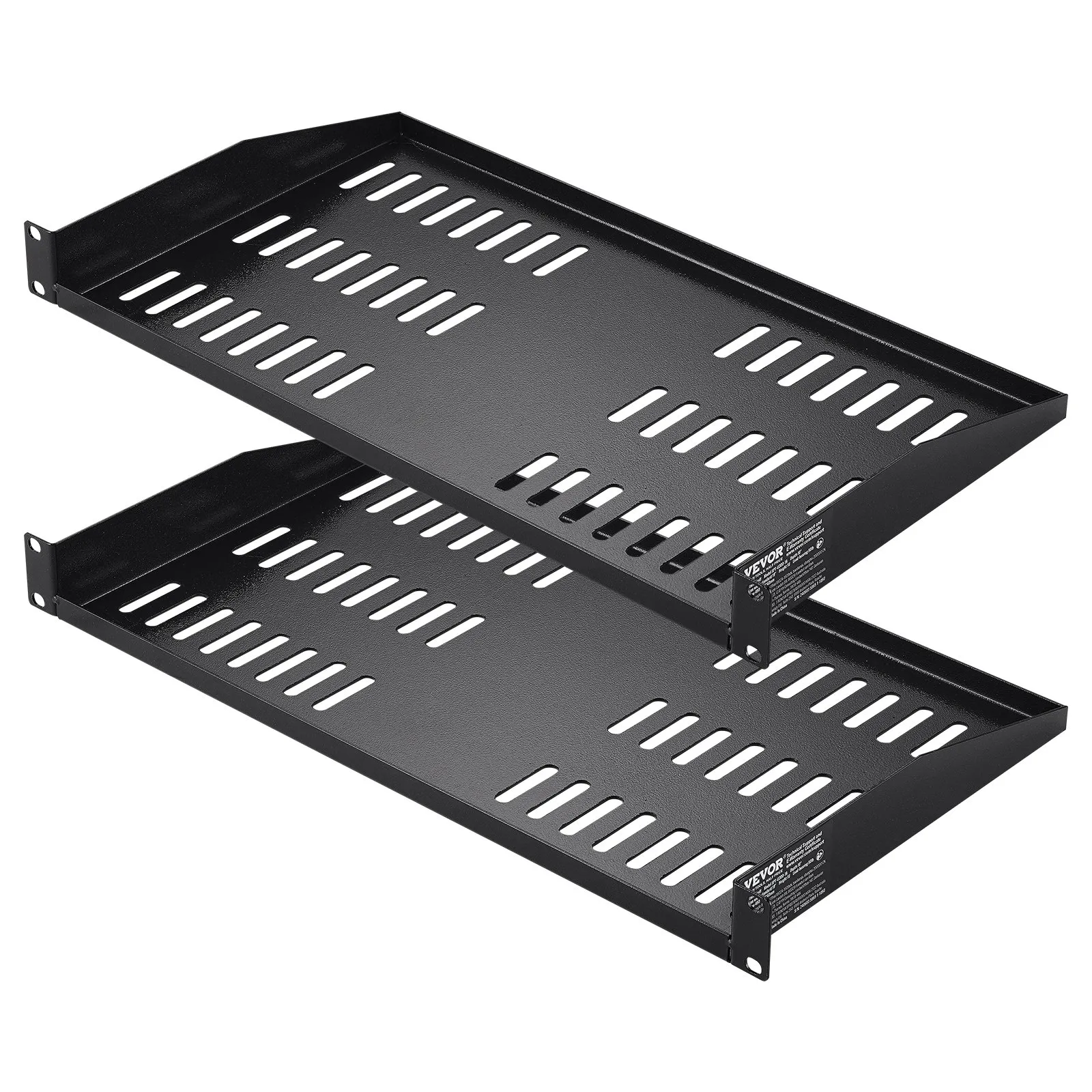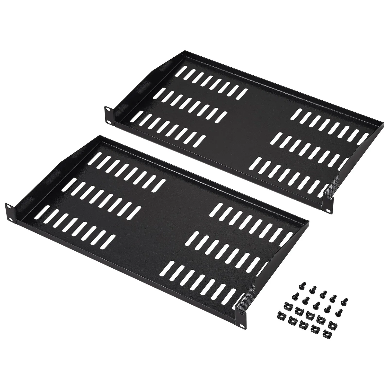 2-balenie 1U serverových rackových políc, hĺbka 10″/254 mm, maximálna nosnosť 50 libier, vetrané konzolové alebo nástenné rackové poličky s policou, dobrá cirkulácia vzduchu pre 19″ sieťovú skriňu alebo rackové zariadenia