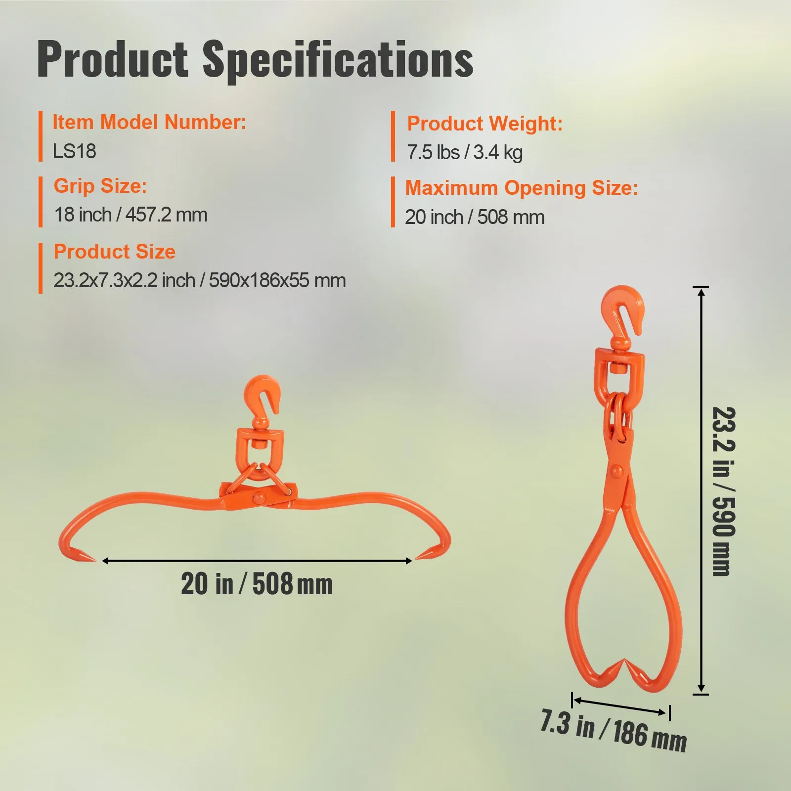 Veľký otvor: S maximálnym otvorom 20 palcov a uchopením 18 palcov sú naše kliešte na drevo ideálne na zdvíhanie a premiestňovanie veľkých kmeňov. Môžu sa použiť aj na manipuláciu s kopami sena, káblami, kameňmi a inými predmetmi. Zvládnite ťažké zdvíhanie efektívne!