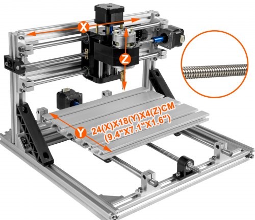 Tento CNC gravírovací stroj s efektívnym pracovným zdvihom 9,4″(X)x7,1″(Y)x1,6″(Z), je vyrobený z hliníkových profilov a čiernych vstrekovacích materiálov. Je vybavený USB portom, ovládacou doskou GRBL a offline ovládač, ľahko ovládateľný s počítačom aj bez neho. Je možné ho použiť na gravírovanie všetkých druhov plastov, mäkkého hliníka, dreva, PVC atď., čo je vynikajúci cenovo dostupný samoučiaci sa gravírovací nástroj.