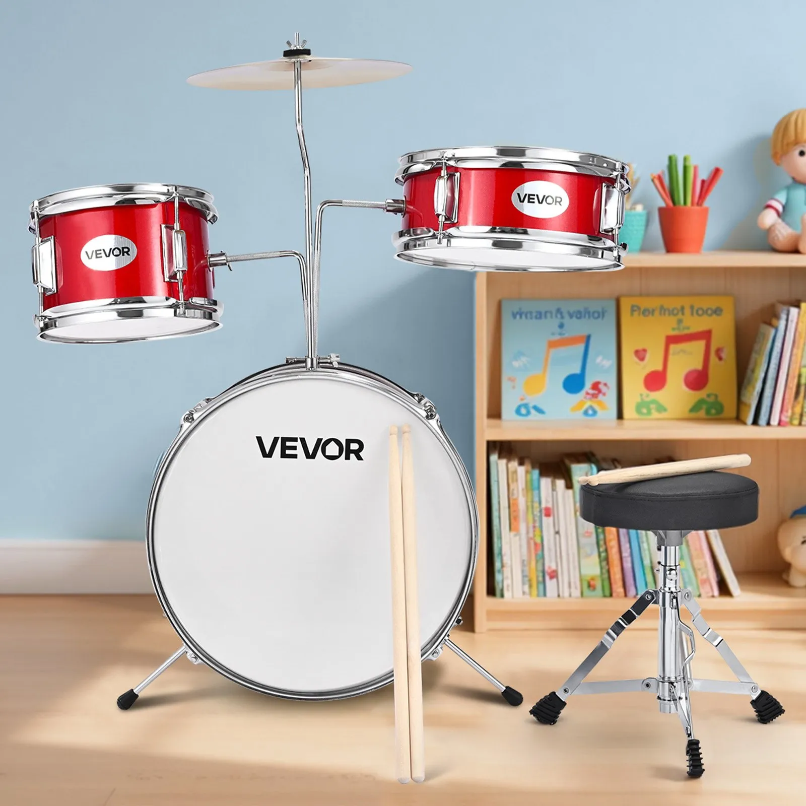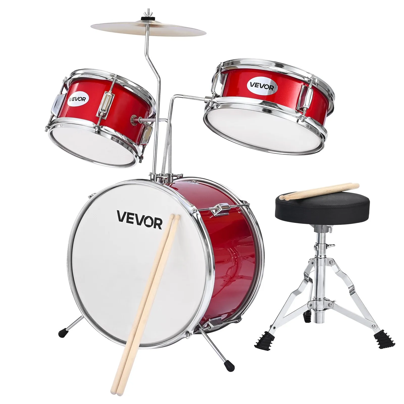 3-dielna bicia súprava , bicia súprava so 14-palcovým basovým bubnom, 10-palcovým malým bubnom a 8-palcovými tom-tommi, sada bicích nástrojov na učenie hudby, ideálna pre deti vo veku 6 až 13 rokov (červená)
