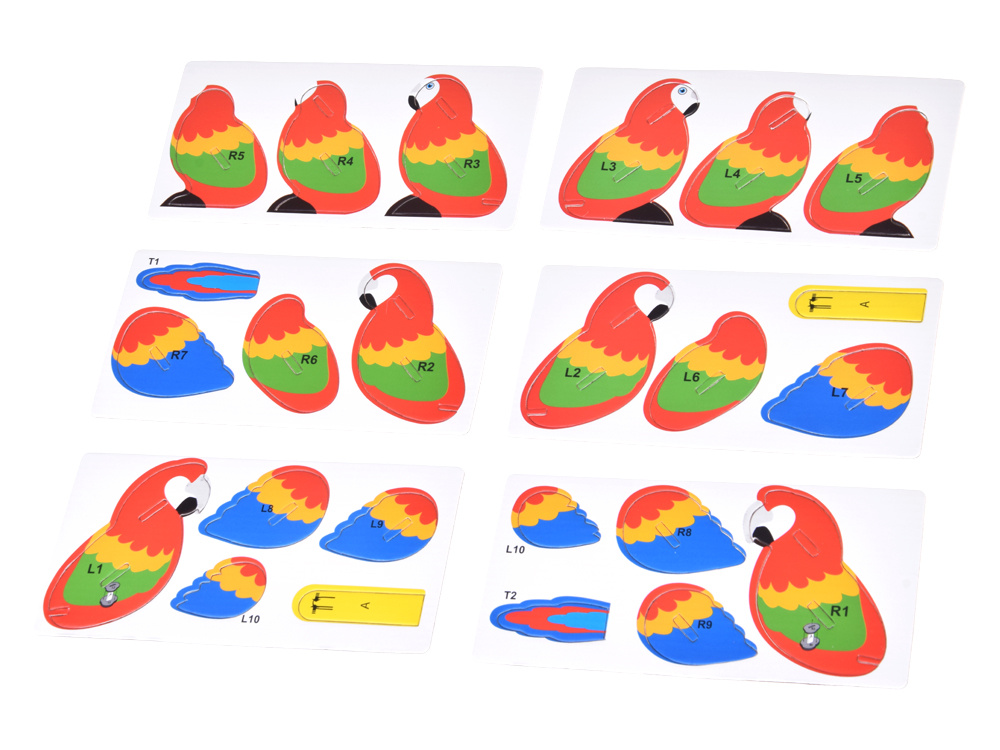 Tento 3D kartónový model je kreatívne puzzle, ktoré deťom umožňuje samostatne zostaviť trojrozmernú figúrku farebného papagája. Diely sú vyrobené z farebného, odolného kartónu, ktorý do seba ľahko zapadá – jednoducho odtrhnite a postupujte podľa pokynov na krabici.