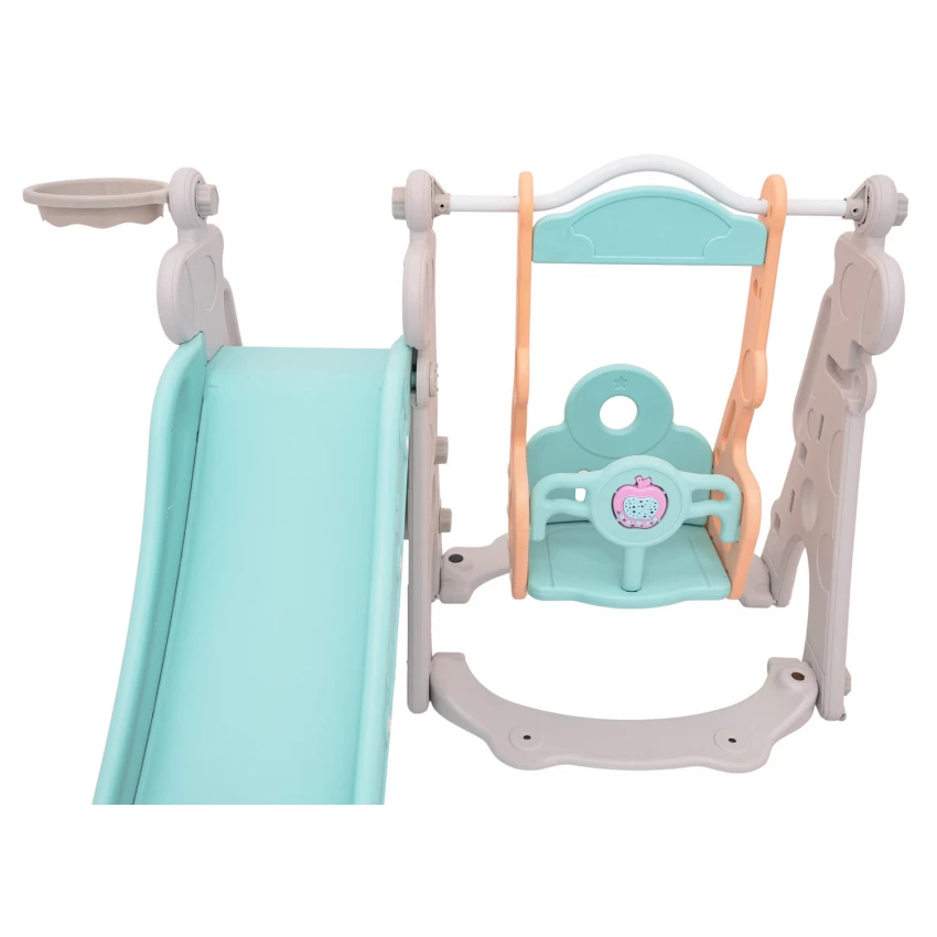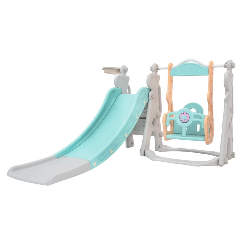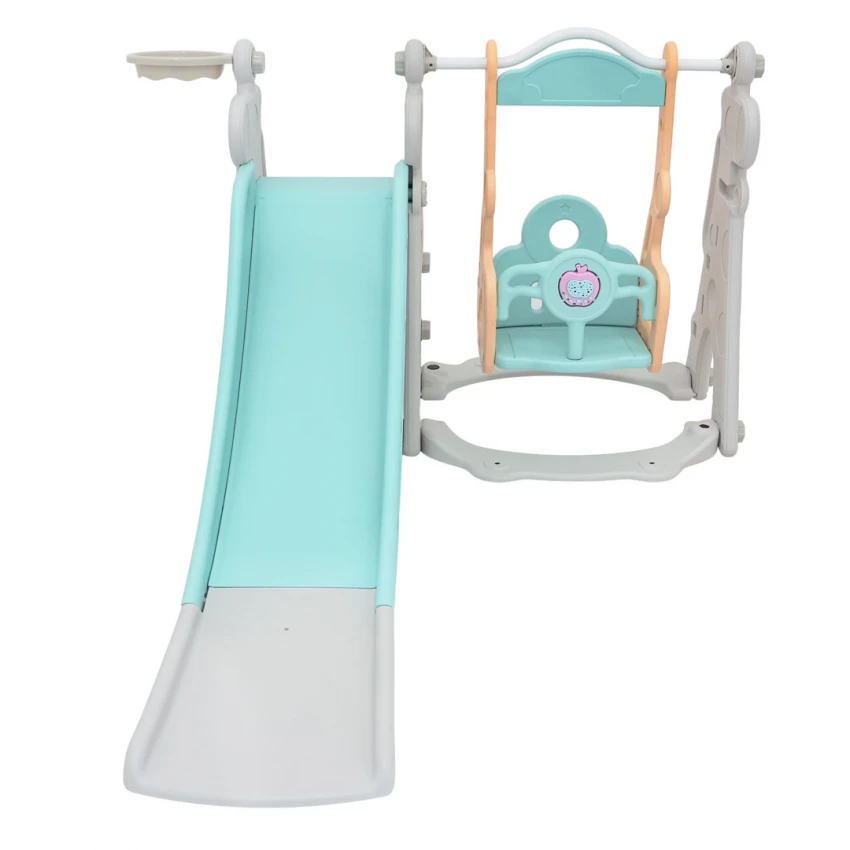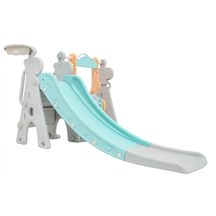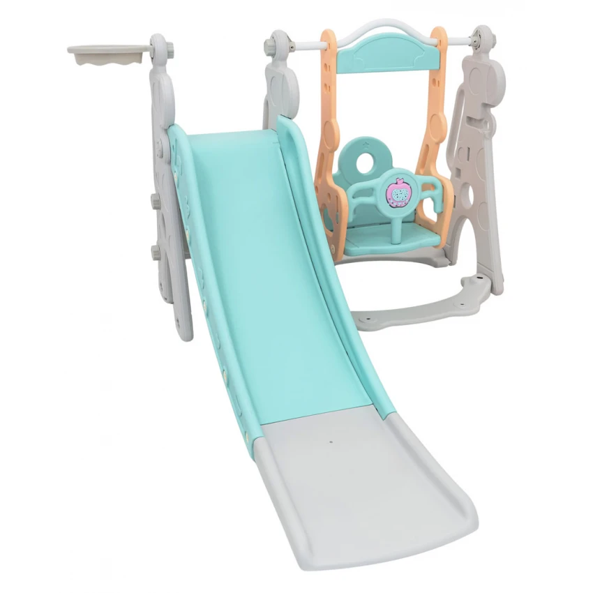 | Sada 3 v 1, šmykľavka, hojdačka, basketbalová lopta pre deti od 1 roka. Všetky prvky sady sú vyrobené z vysoko kvalitného HDPE materiálu, ktorý je pružnejší a odolnejší voči mechanickému poškodeniu v porovnaní s materiálmi používanými v iných podobných konštrukciách. Veľké komponenty uľahčujú montáž. Sada je ideálna na vonkajšie aj vnútorné použitie.