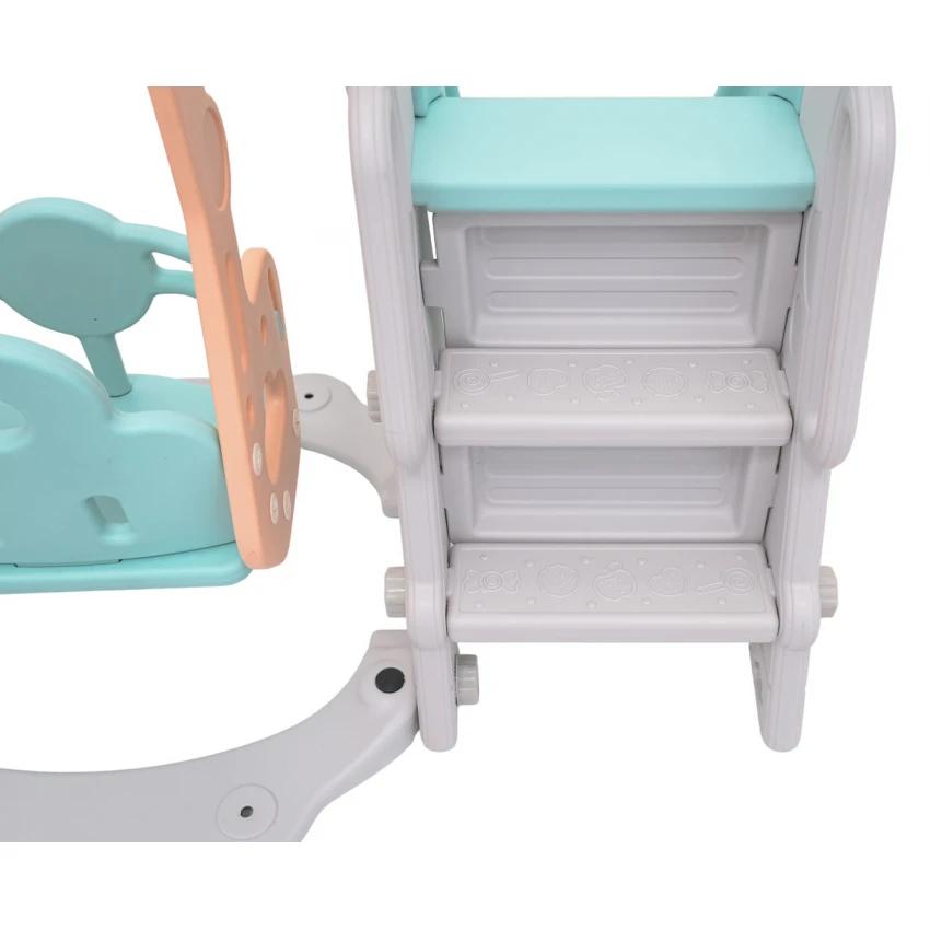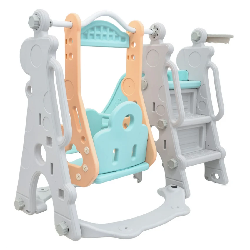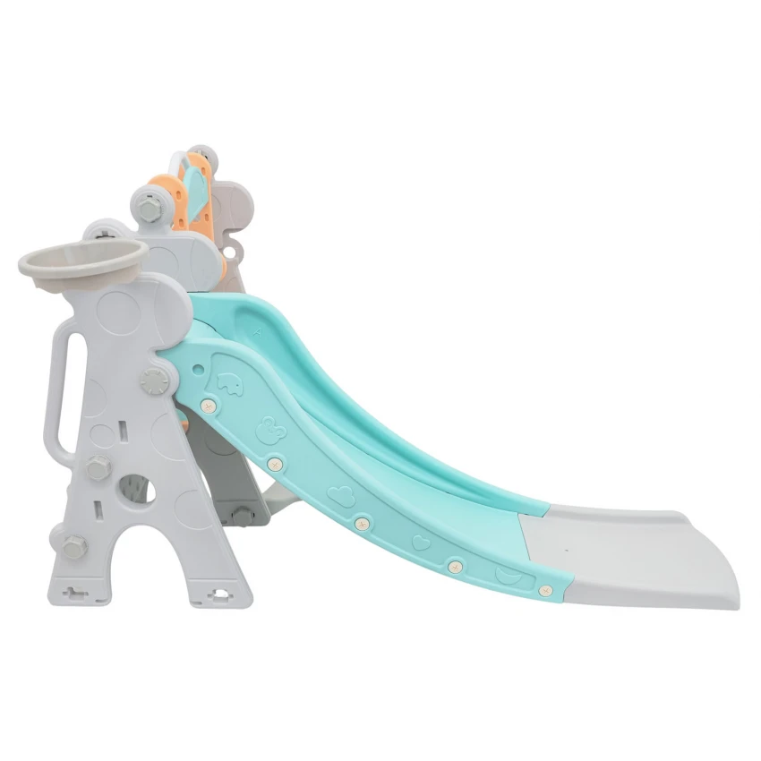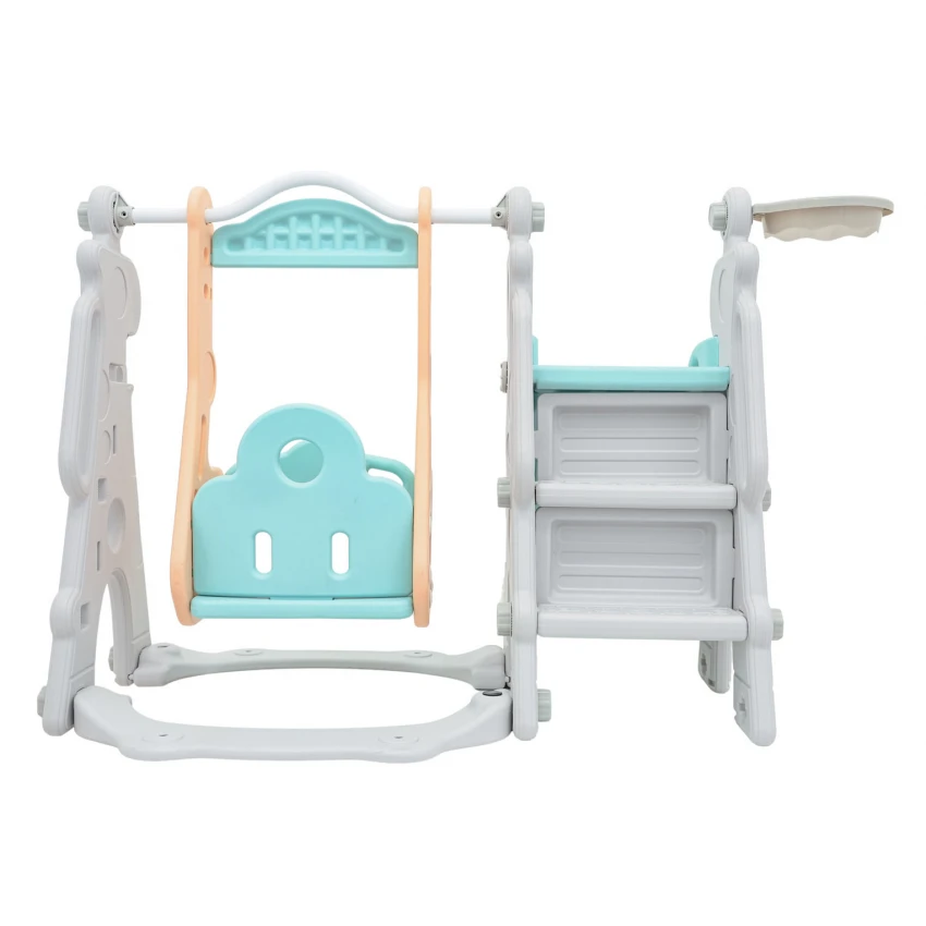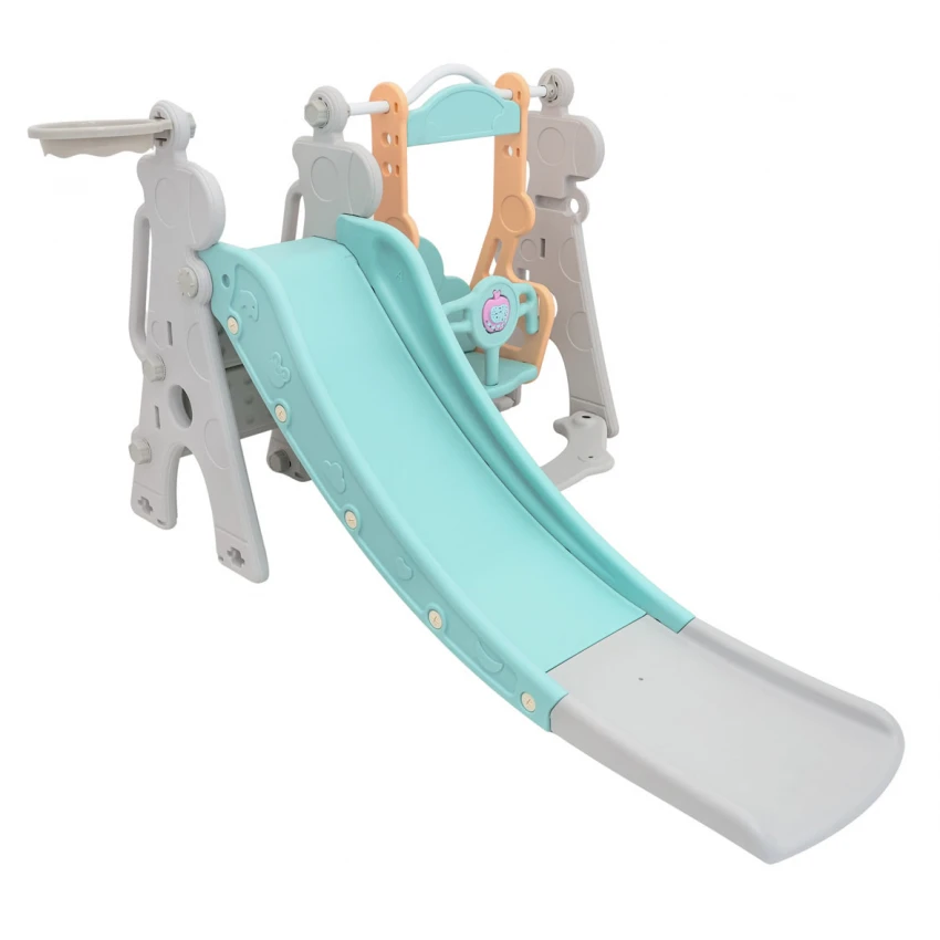 | Sada 3 v 1, šmykľavka, hojdačka, basketbalová lopta pre deti od 1 roka. Všetky prvky sady sú vyrobené z vysoko kvalitného HDPE materiálu, ktorý je pružnejší a odolnejší voči mechanickému poškodeniu v porovnaní s materiálmi používanými v iných podobných konštrukciách. Veľké komponenty uľahčujú montáž. Sada je ideálna na vonkajšie aj vnútorné použitie.