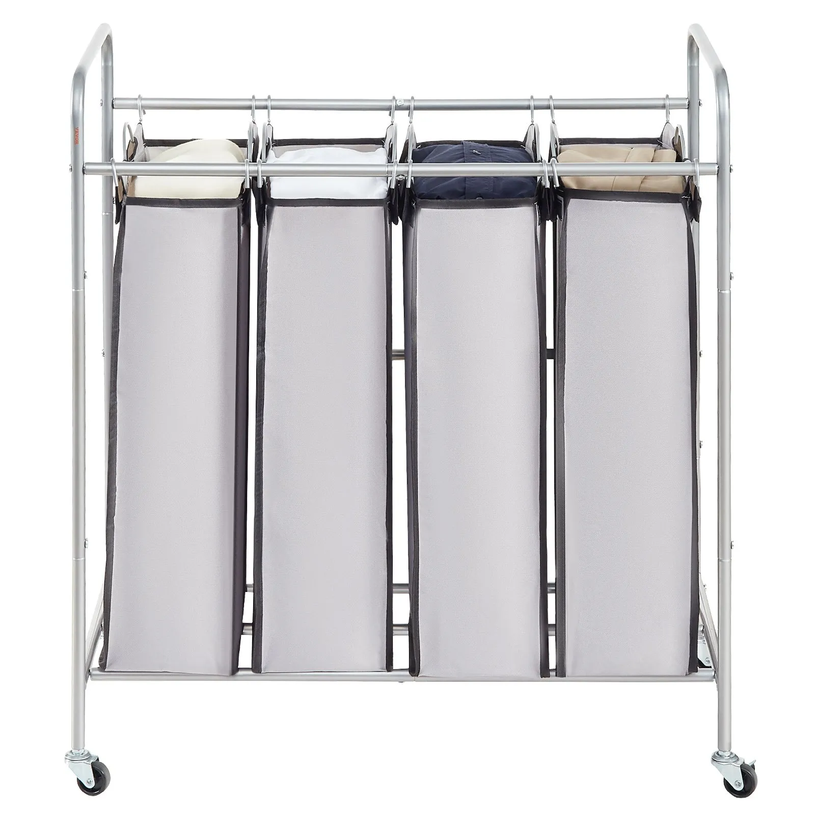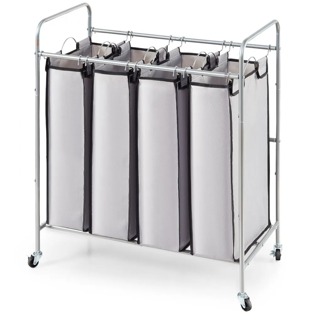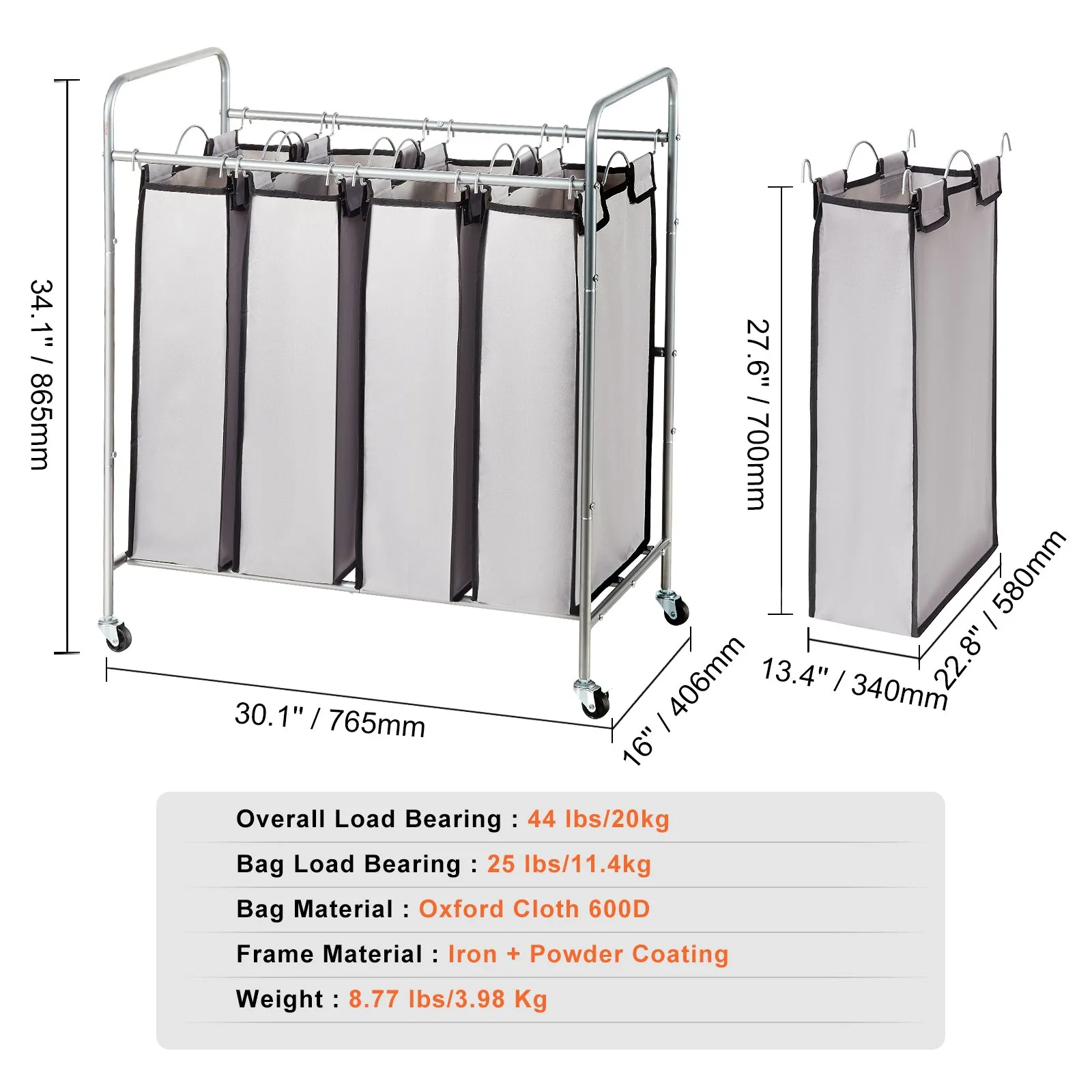 Dostatok úložného priestoru: Rozmery 4-dielneho triediaceho vozíka na bielizeň sú 765 x 406 x 865 mm (30,1 x 16 x 34,1 palca) a rozmery každého jednotlivého vreca na bielizeň sú 34,5 x 16,5 x 58,9 cm (13,6 x 6,5 x 23,2 palca). Každé pevné vreco na bielizeň pojme až 11,4 kg oblečenia a poskytuje dostatok miesta na oblečenie, uteráky, posteľnú bielizeň a ďalšie bielizeň, vďaka čomu sú usporiadané a ľahko dostupné.