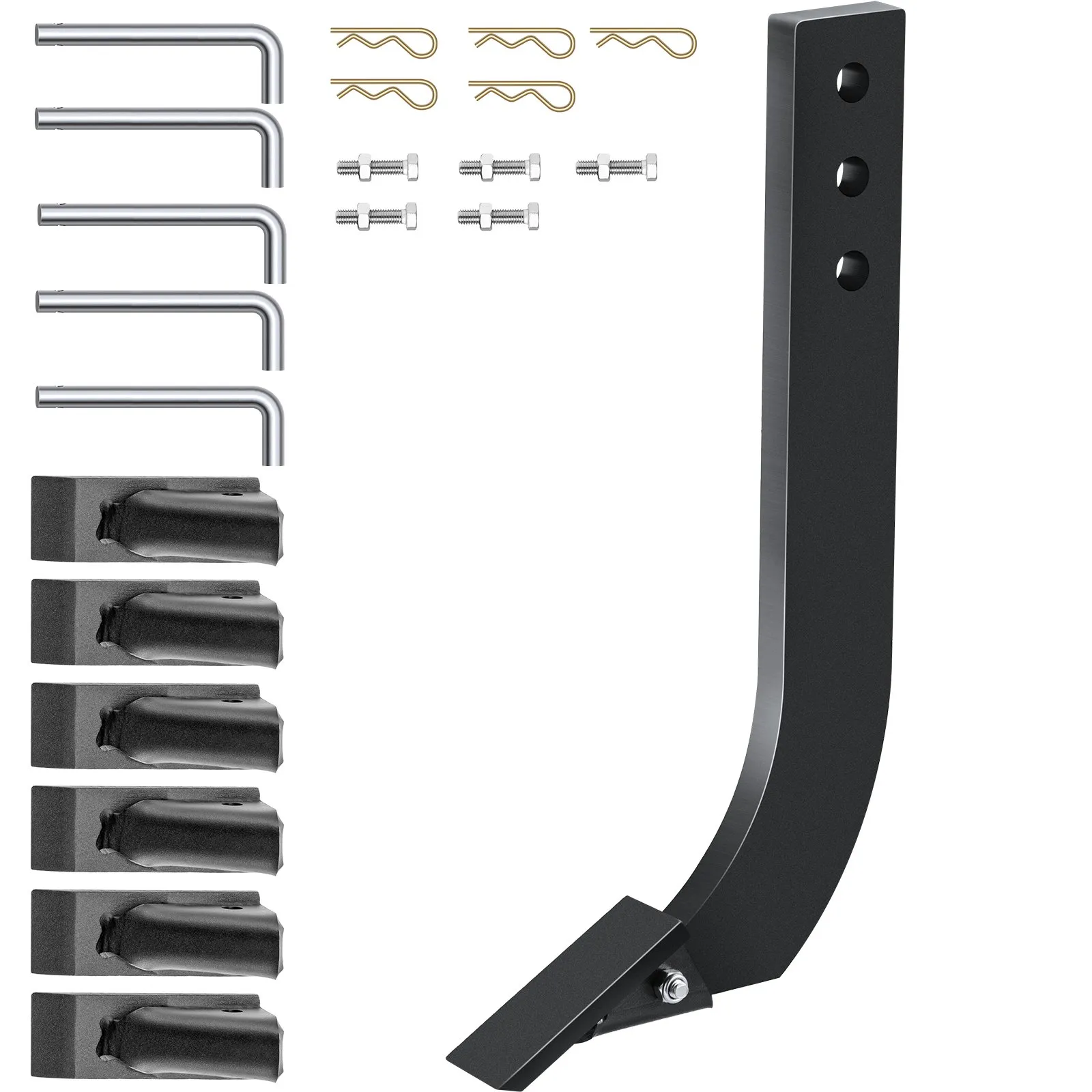 5-dielna násada nožov, násada vertikutátora 410 mm, násada škrabáka s 3 otvormi, s odnímateľnými kužeľovými zubami a čapmi, nastaviteľná zostava násady na výmenu, kopanie, orbu