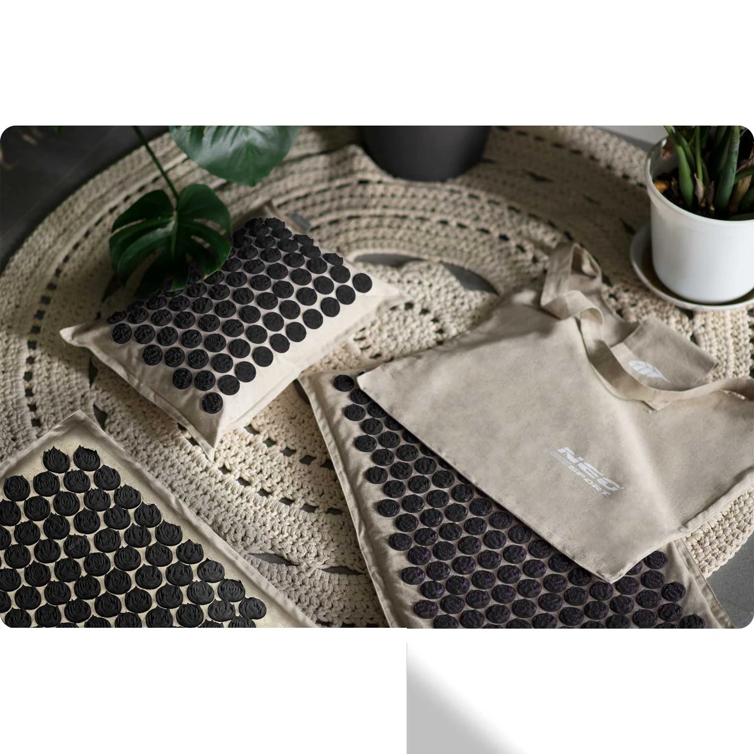 • sada obsahuje 3-dielnu akupresúrnu podložku s vankúšom a štýlovú tašku