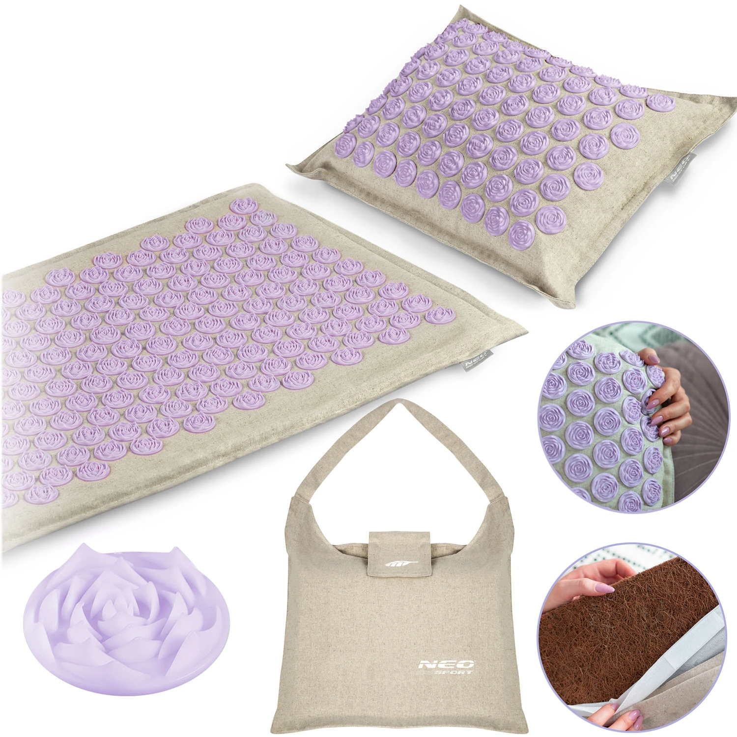 Akupresúrna podložka s hrotmi Neo-Sport NS902 – sivo-levanduľová