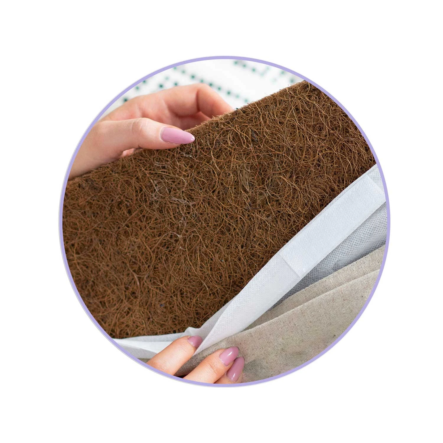 Vnútorný poťah je vyrobený z bavlny, vonkajší poťah je vyrobený z 50 % ľanu a 50 % bavlny, vďaka čomu podložka perfektne prilieha k telu, je príjemná na dotyk a fakt, že je vyrobená z prírodných materiálov, má pozitívny vplyv na zdravie .