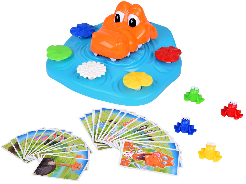 Zamiešajte karty a položte ich lícom nadol na kôpku vedľa hernej dosky. Najmladší hráč ovláda karty a aktivuje krokodíla. Ostatní hráči ovládajú svoju žabu.