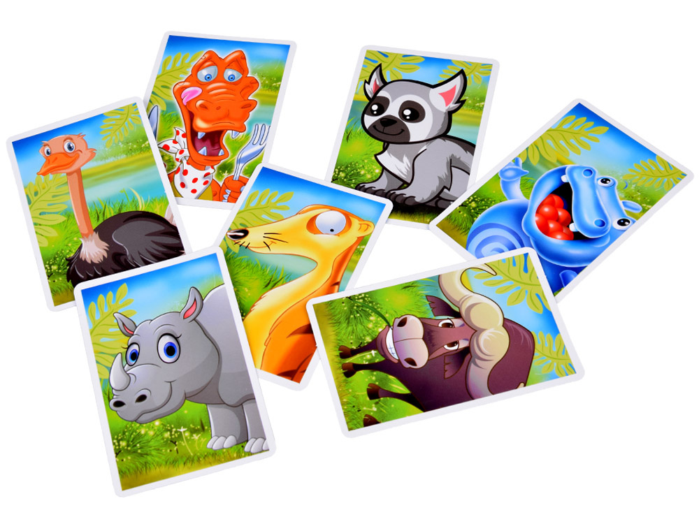 Najmladší hráč začne otáčať karty jednu po druhej, aby ich všetci hráči videli. Pozorne sledujte, ako okolo prechádzajú ich močiarni susedia – žirafy, nosorožce, hrochy a ďalší. Keď sa objaví karta krokodíla, hráč ťukne na kvet bieleho lekna, aby krokodíl zachrípal!