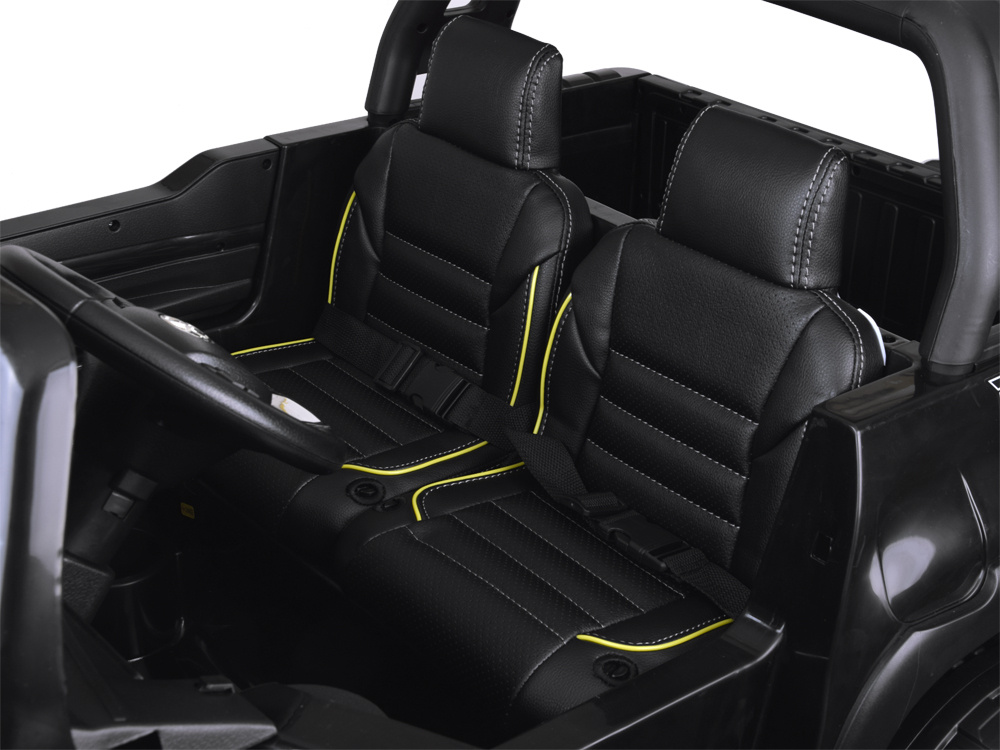 – auto naštartované kovovým kľúčom (spustí sa zvuk motora)- prepnutím zmeníte smer vpred/vzad- prepnutím zmeníte pohon: 2×2, 4×4- hudobný panel obsahujúci: rádio, načítané veselé pesničky, USB port, mini SD karta, MP3, Bluetooth- tlačidlo zabudované na volante, ktoré umožňuje meniť hudbu- auto ovládané diaľkovým ovládaním- LED osvetlenie predné + zadné- sklopné bočné zrkadlá- mäkké EVA kolesá nové- bezpečnostné pásy- pohodlné dvojmiestne kožené kreslo- otváracie dvere- priestranný kufor- otváracie veko kufra a kapota- kovový kľúč- miesta na nápoje
