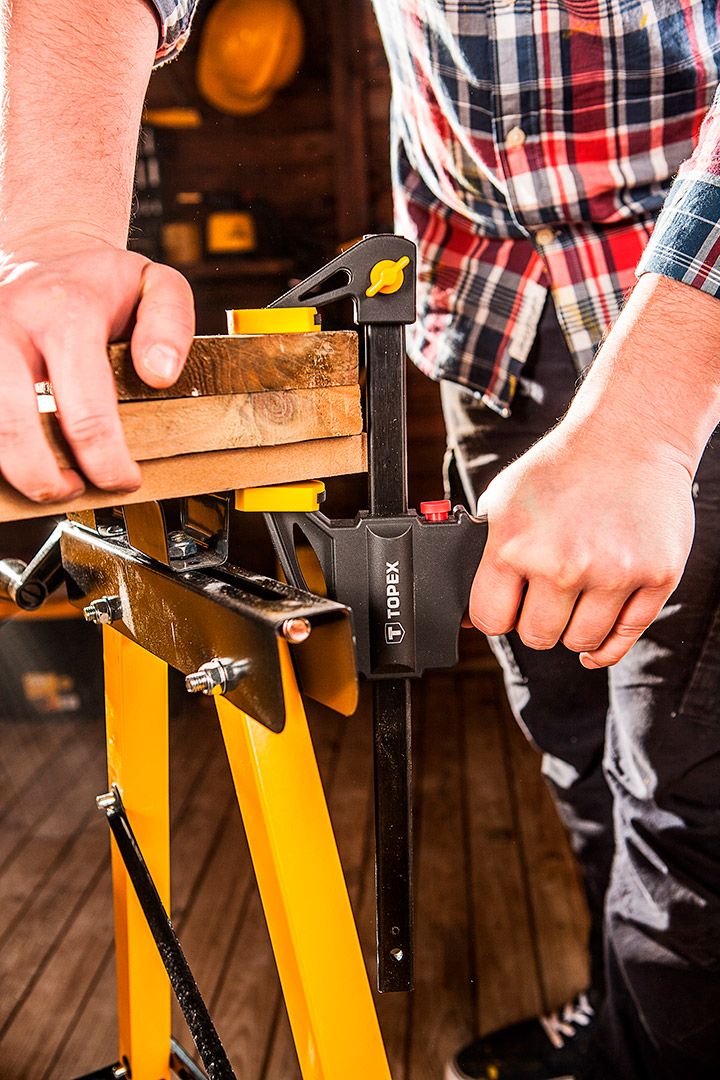Automatická svorka TOPEX (ref. č. 12A515) je univerzálna svorka, ktorú možno použiť ako pracku, rozperu a iné. Užitočné ako pre profesionálne práce, tak aj pre menšie renovačné a stavebné práce. Rukoväť pištole vyrobená z kvalitného plastu, profilovaná pre väčšie pohodlie pri používaní. Dodatočne vybavená systémom rýchleho posuvu, ktorý uľahčuje prácu s náradím. Certifikáty TÜV a GS zaručujú spoľahlivosť produktov. Značka TOPEX je zameraná na domácich majstrov.