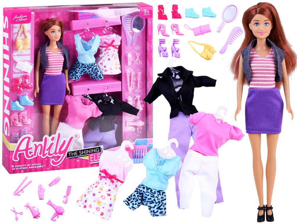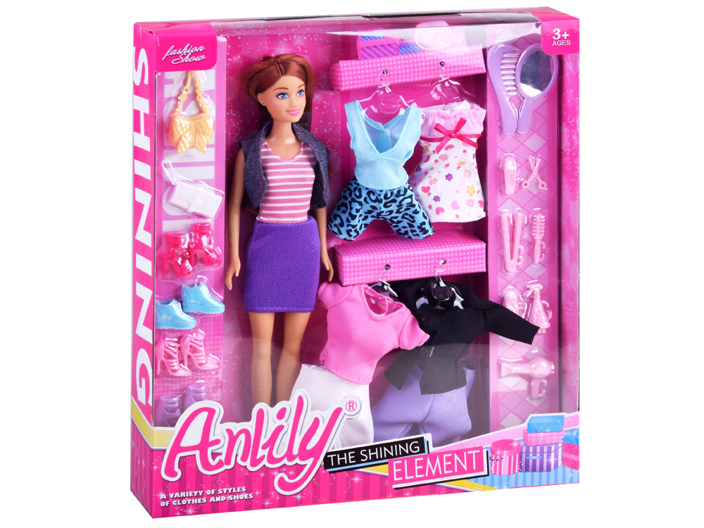 Bábika s oblečením a doplnkami na úpravu vlasov sa bude páčiť každému dievčatku. Táto sada obsahuje oblečenie, šaty, tričká, nohavice, topánky, kabelky a vlasové doplnky, aby bábika vždy vyzerala bezchybne.