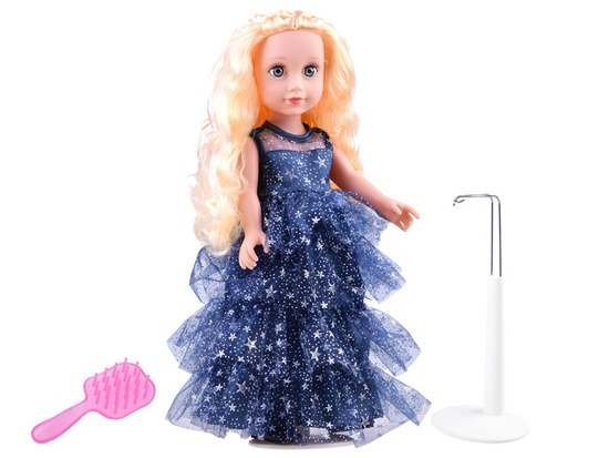Elegantná bábika opernej divy . Táto bábika má dlhé blond vlasy, krásne plesové šaty a čierne lodičky. Bábika je vyrobená celá z plastu a má pohyblivé ruky, nohy a hlavu. Krásna Ariana, oblečená v tmavomodrých plesových šatách ozdobených striebornými hviezdičkami, by mohla byť najlepšou kamarátkou dieťaťa. Túto bábiku si samozrejme môžete vziať na akýkoľvek ples alebo narodeninovú oslavu, ale myslím si, že Ariana by rada pozerala aj rozprávku, počúvala hudbu, zdieľala priznania atď. Hra s touto bábikou je čistá radosť.