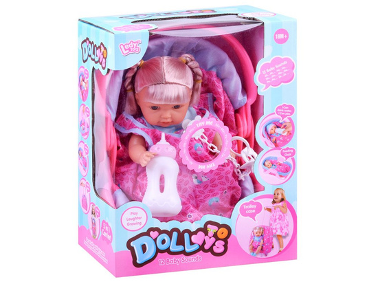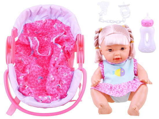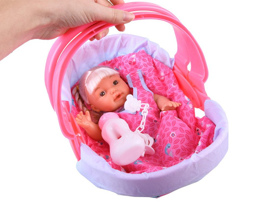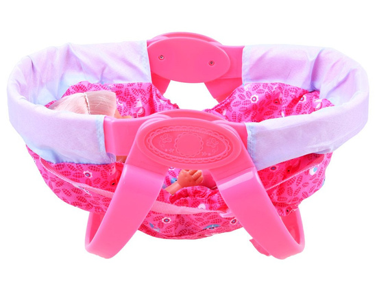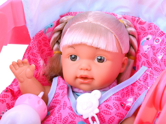 Sada obsahuje aj príslušenstvo na kŕmenie bábätka. Kompletná, kompaktná sada sa bude perfektne hodiť do každej malej detskej izby. Vďaka veľkej veľkosti nosiča sa doň zmestí bábika s výškou až 30 cm!Hlasové funkcie bábiky: