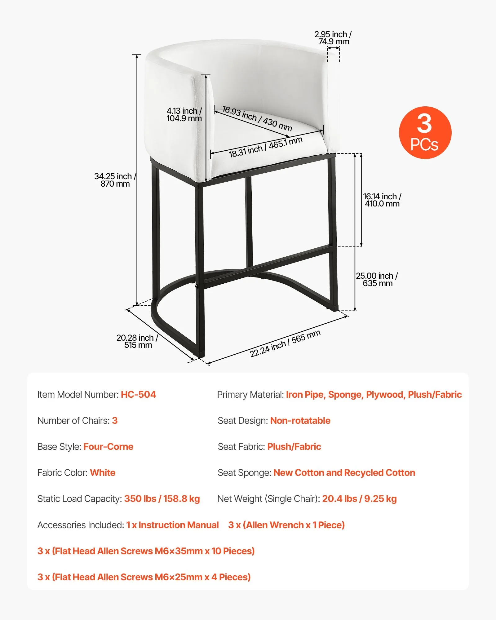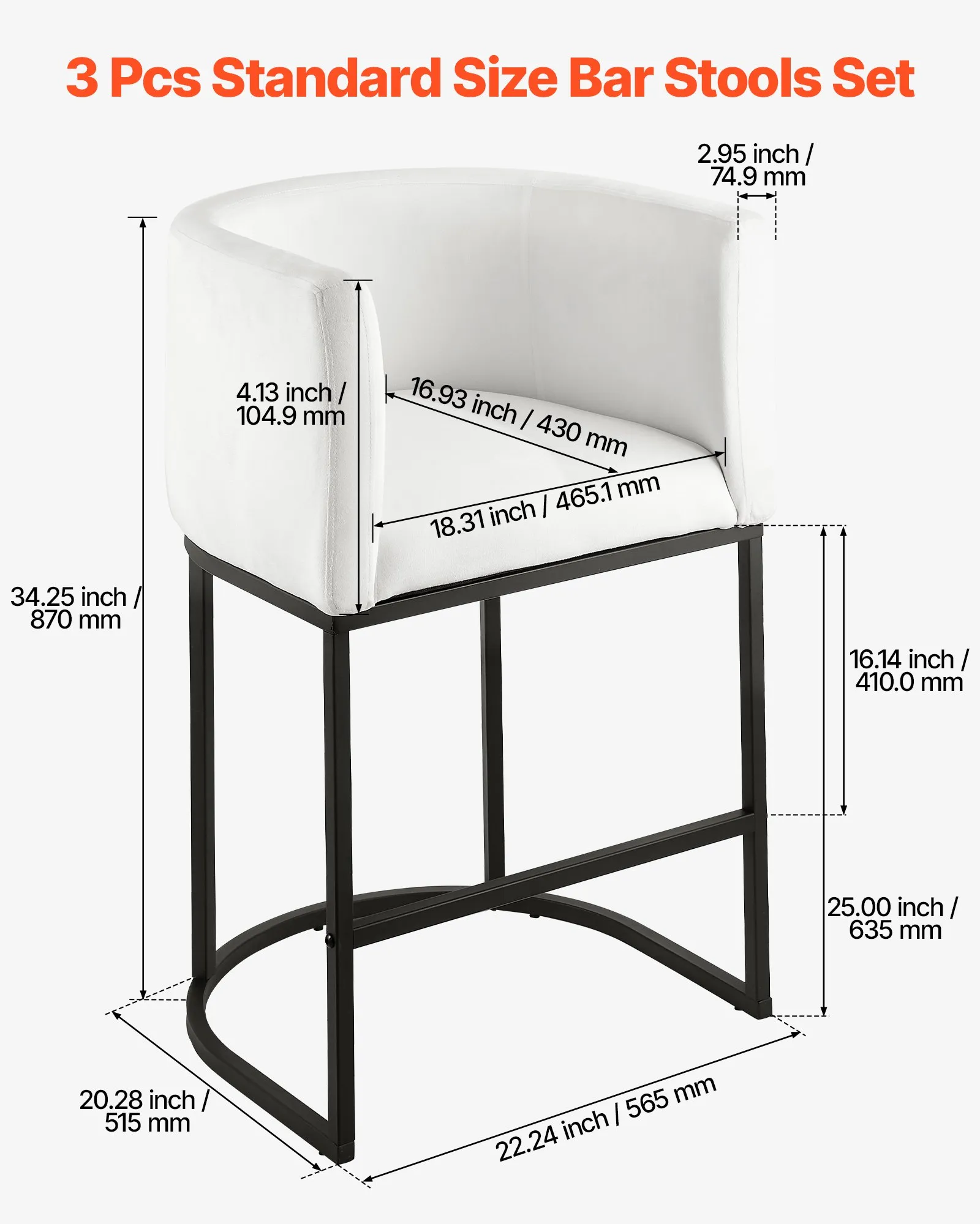 Praktická sada: Sada obsahuje 3 barové stoličky s rozmermi 565 x 515 x 870 mm (22,24 x 20,28 x 34,25 palcov) s výškou sedadla 63,5 cm (25 palcov). Táto barová stolička je ideálna pre väčšie rodiny alebo otvorené kuchyne, ktoré často striedajú stolovanie, spoločenské stretnutia a kancelárske aktivity.