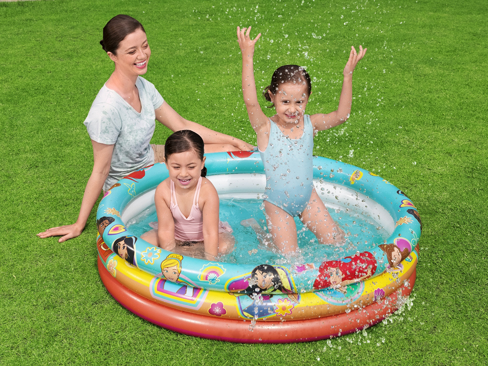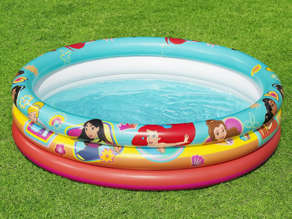 Nafukovací bazén pre deti, rozmery 122 x 30 cm, značka Bestway (model 91099) je ideálny priestor na hranie pre malé princezné. Navrhnuté s ohľadom na najmladších. Bazén nadchne svojím šarmom a farbami, dominujú mu motívy súvisiace s princeznami z obľúbených rozprávok.Grafika v bazéne zobrazuje rozprávkové postavy z rozprávok ako Ariel, Popoluška, Mulan, Moana – vďaka čomu je každý okamih strávený vo vode nezabudnuteľným dobrodružstvom.