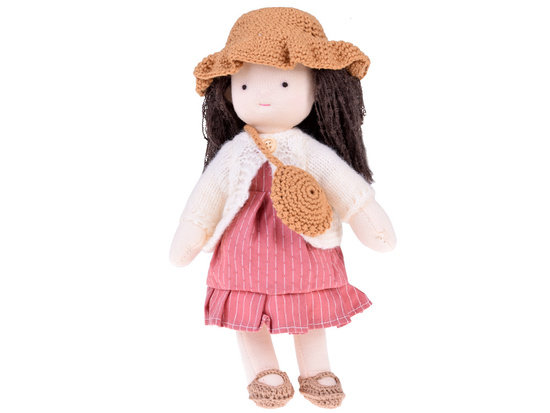 Bábika je oblečená v ružových šatách, ktoré v kombinácii s pleteným svetrom a čiapkou jej dodávajú jedinečný, očarujúci charakter. Jej vlasy, jemné a pripomínajúce prírodnú textúru, sú dlhé a splývavé a oblečenie v pastelových, tlmených farbách jej dodáva harmonický a upokojujúci vzhľad. Elegantné topánky a starostlivo prepracované detaily demonštrujú pozornosť venovanú každému prvku, vďaka čomu je nielen dokonalou hračkou, ale aj očarujúcou dekoráciou do detskej izby.