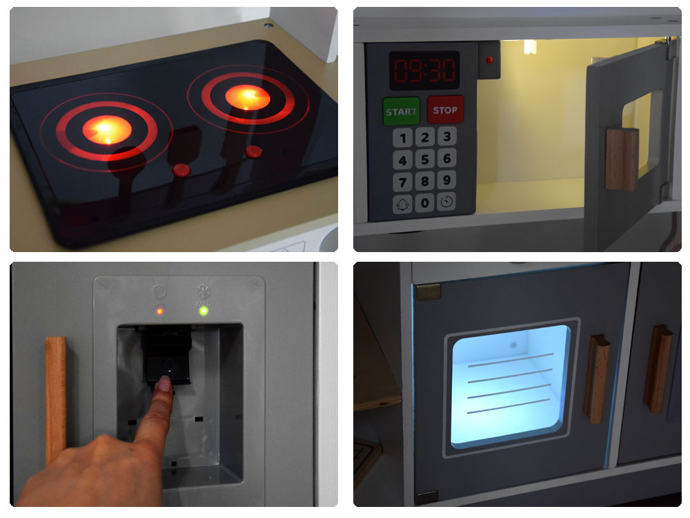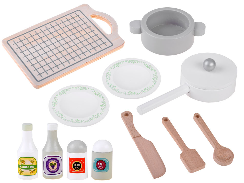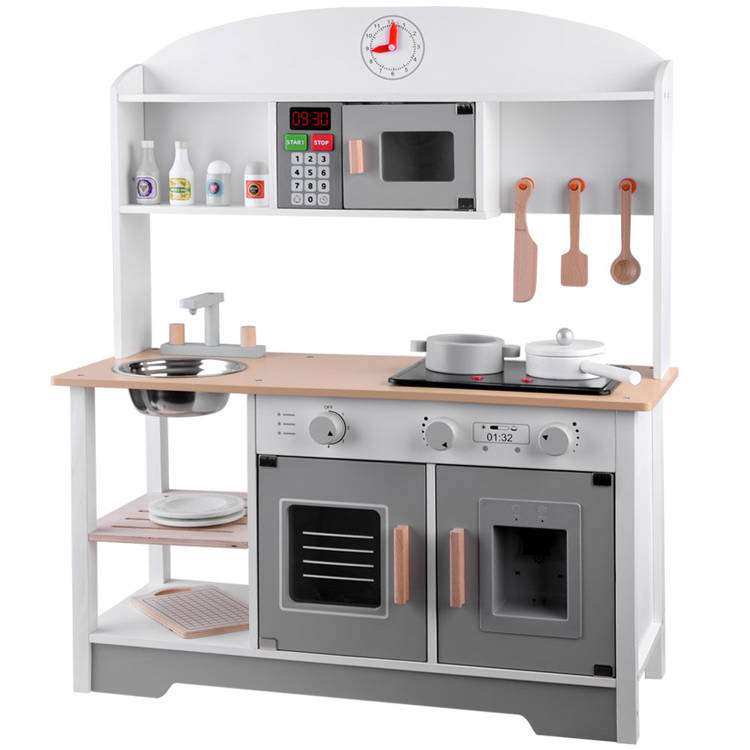 Veľká BIELO-ŠEDÁ drevená kuchyňa pre deti s príslušenstvom – kreatívna domáca hra