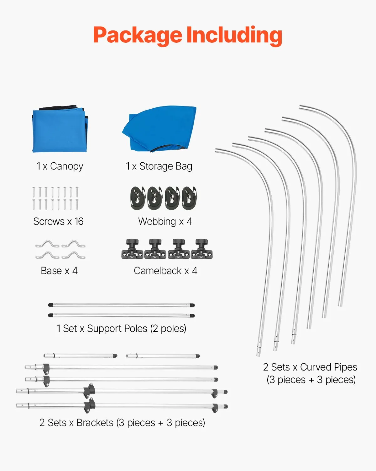Vyberte si ideálnu veľkosť: Dostupné v rôznych veľkostiach vrátane 3 oblúkov (D x Š x V) 72 x 79-84 x 46 palcov (182,88 x 200,66-213,36 x 116,84 cm). Jednoducho zmerajte šírku paluby vašej lode a vyberte si vhodnú markízu.