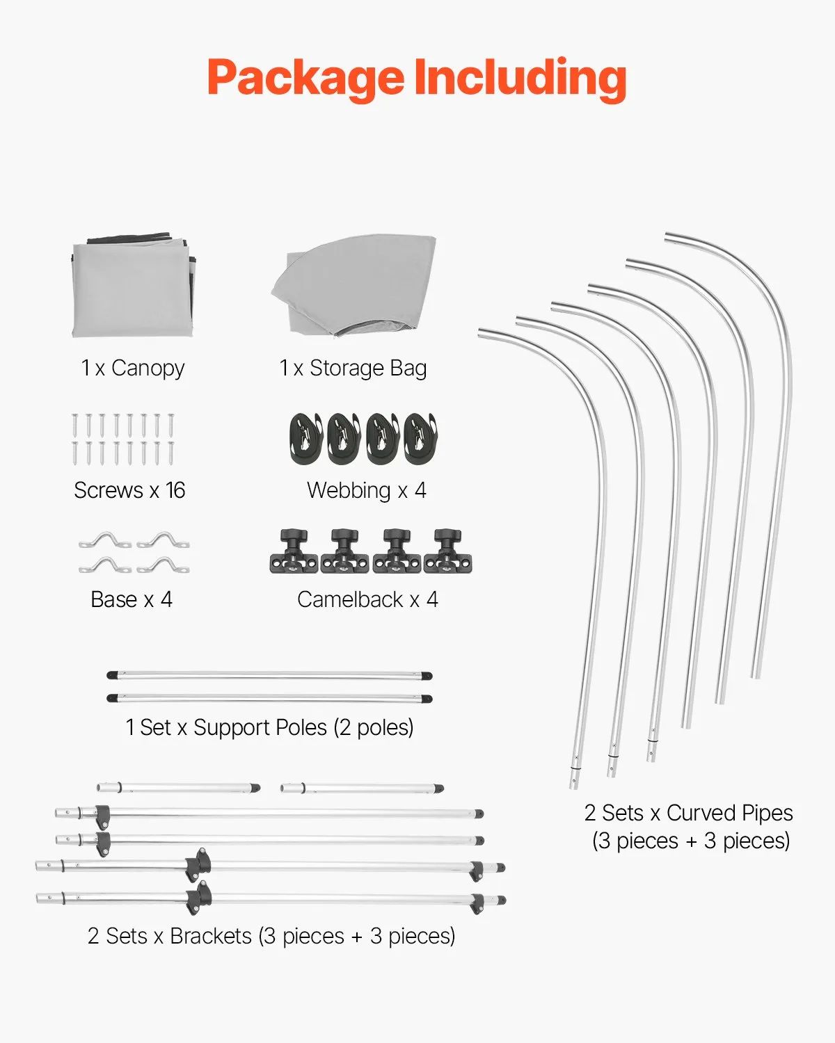 Vyberte si ideálnu veľkosť: Dostupné v rôznych veľkostiach vrátane 3 oblúkov (D x Š x V) 72 x 79-84 x 46 palcov (182,88 x 200,66-213,36 x 116,84 cm). Jednoducho zmerajte šírku paluby vašej lode a vyberte si vhodnú markízu.