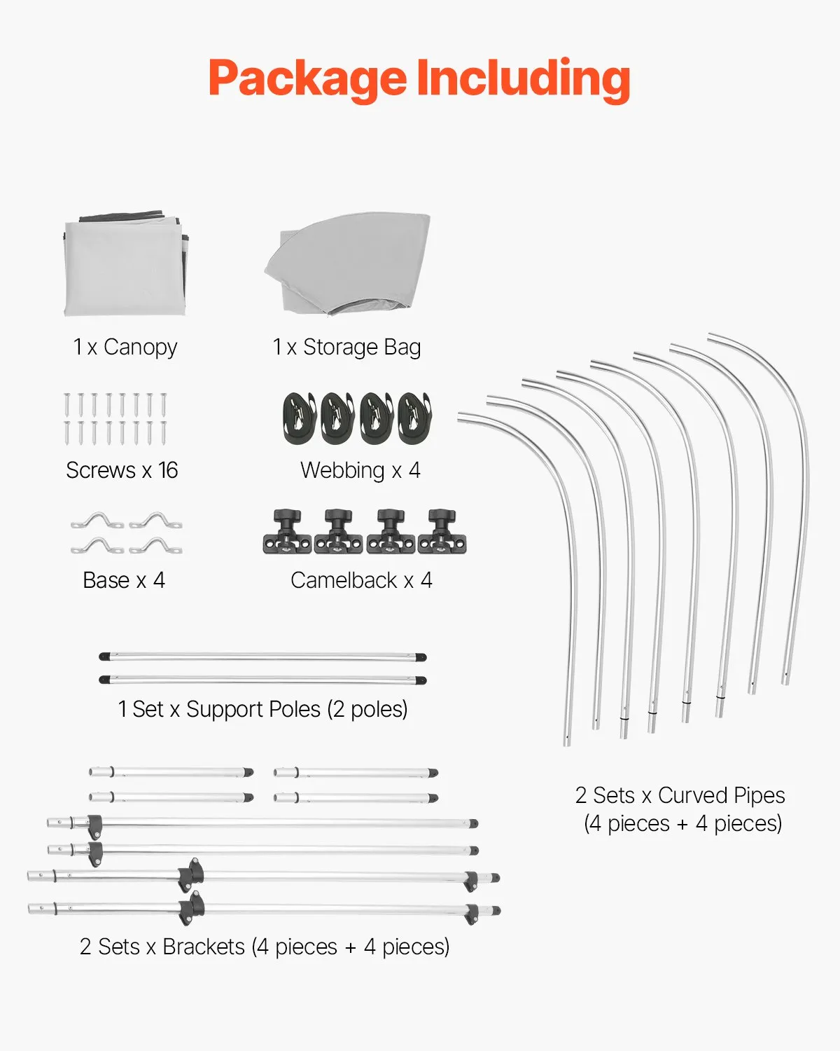 Vyberte si ideálnu veľkosť: Dostupné v rôznych veľkostiach vrátane 4 oblúkov (D x Š x V) 96 x 85-90 x 54 palcov (243,84 x 215,9-228,6 x 137,16 cm). Jednoducho zmerajte šírku paluby vašej lode a vyberte si vhodnú markízu.