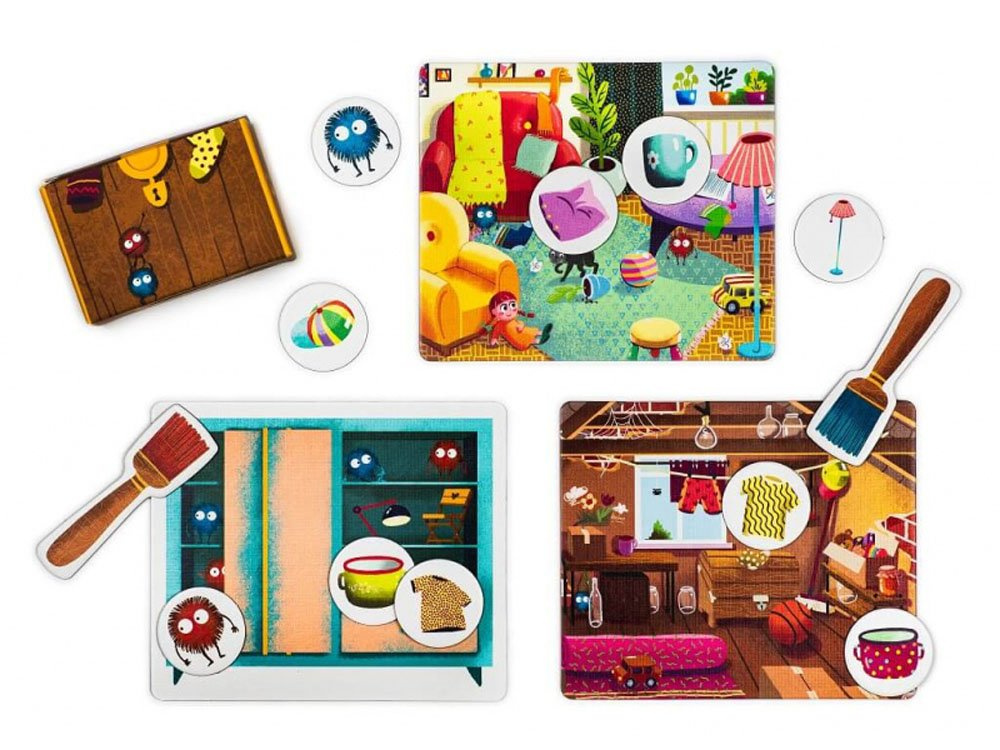 Pozrite sa, aké jednoduché je organizovať veci podľa  typu, veľkosti alebo farby . Najjednoduchším variantom je  pexeso , kde jednoducho hľadáte predmety rovnakého druhu a spárujete ich. V  kooperatívnom variante  hráči spolupracujú, aby čo najrýchlejšie našli predmety skôr, ako sa v miestnosti objavia oblaky prachu a vytvoria neporiadok. V  súťažnom variante  hráči pretekajú, kto ako prvý usporiada svoju hraciu dosku.