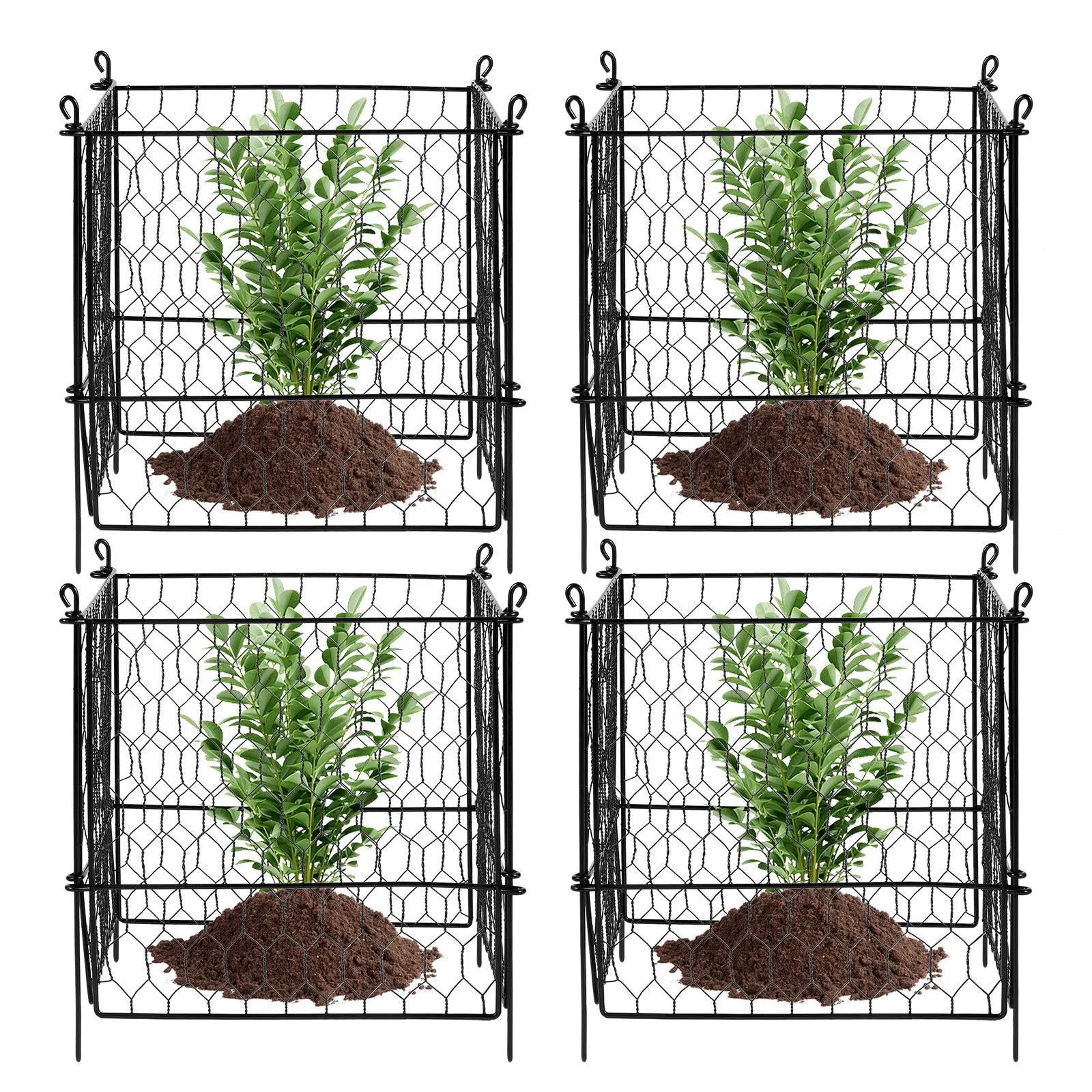 Chrániče rastlín pre zvieratá, 13,5 x 13,5 palcové chrániče rastlín z drôteného pletiva, klietky na vonkajšie rastliny, kvety a zeleninu, držia králiky, sliepky a veveričky preč, 16-dielna kovová sieťovina