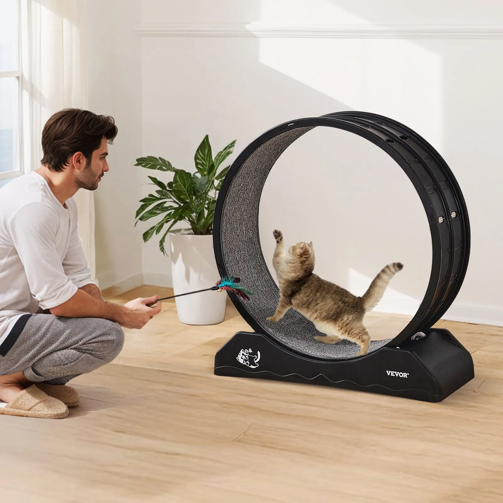 Cvičné koleso pre mačky, 80x34x85cm, Veľké bežecké koleso pre mačky s bezpečnou brzdou a kobercovou bežeckou dráhou, Tichá prevádzka, Bežecký pás pre mačky, Koleso pre mačky na chudnutie a zdravie, Čierne