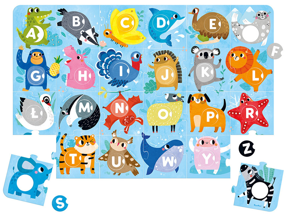 Puzzle je obrovské, rozprávkovo farebné a krásne ilustrované. Inšpiruje k učeniu sa písmen a umožňuje mnoho komplexných aktivít. Skladanie puzzle je len jednou z nich. Priložený návod je plný nápadov na vzdelávacie aktivity, prispôsobené veku a schopnostiam dieťaťa. Puzzle sú ideálne pre domáce aj predškolské použitie.
