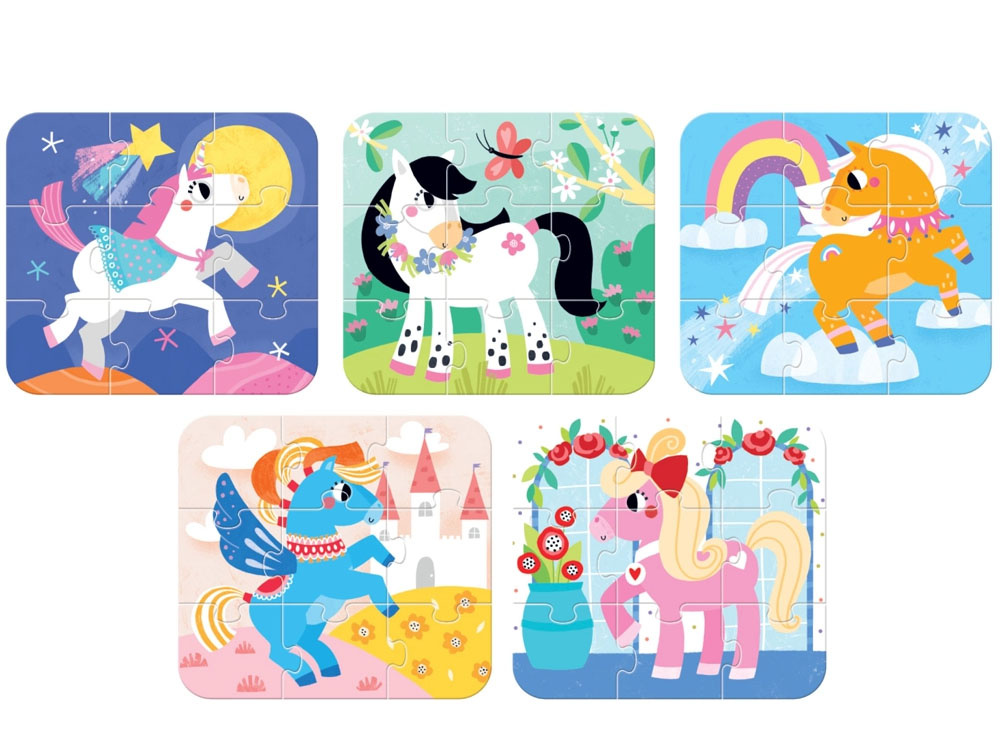 CzuCzu Aranžujem kone je sada piatich farebných puzzle s ilustráciami a dizajnom prispôsobeným veku dieťaťa. Každé puzzle sa skladá z 9 dielikov. Skladanie puzzle je skvelé pre rozvoj detskej koncentrácie, predstavivosti a schopnosti spájať detaily. Rozvíja tiež koordináciu oko-ruka a jemnú motoriku.