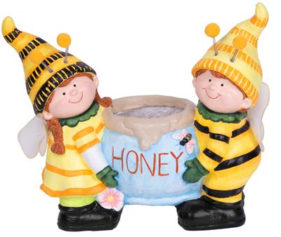 Posaďte si Váš obľúbený kvet do tejto krásnej keramickej dekorácie včeličiek, ktoré držia kvetináč ! Určite poteší malých aj veľkých. Majú kývajúce sa tykadlá. Rozmery: 42×19,5×37 cm.