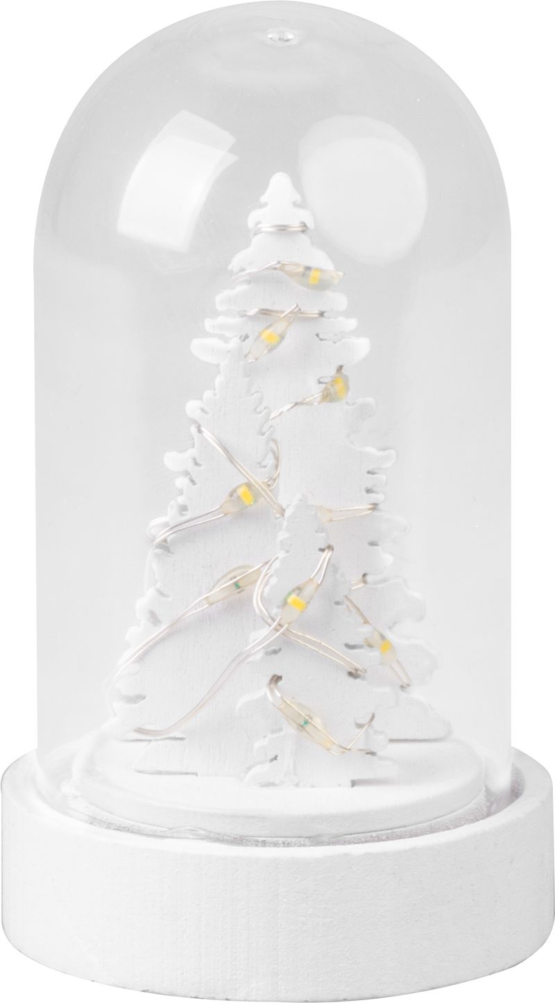 Dekorácia MagicHome Biely stromček v kupole je vkusným doplnkom vášho interiéru počas vianočných sviatkov. Je to vianočná dekorácia s LED osvetlením. Farba LED je teplá biela a počet LED je 1. Disponuje funkciou jednoduchého svietenia a spínačom ON/OFF. Napájanie zabezpečuje 1 x CR2032 batéria, ktorá je súčasťou balenia. Dekorácia je vhodná do interiéru. Svetelné zdroje nie sú vymeniteľné. Rozmer je 5,5×9 cm.