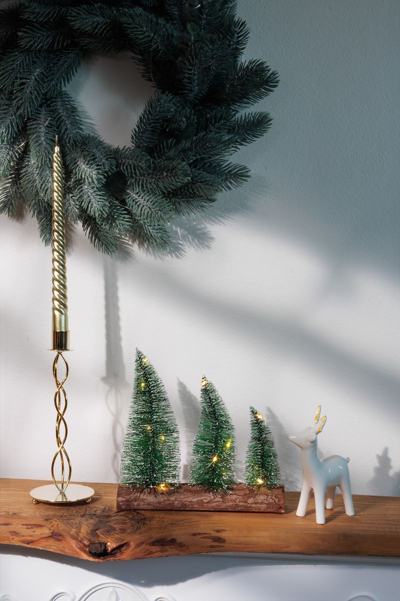 Vneste do svojho domova kúzelnú atmosféru Vianoc s touto krásnou dekoráciou MagicHome. Súprava troch stromčekov umiestnených na drevenom podstavci je doplnená o 12 LED svetiel v teplej bielej farbe, ktoré dodajú vašim sviatkom príjemné a útulné osvetlenie.