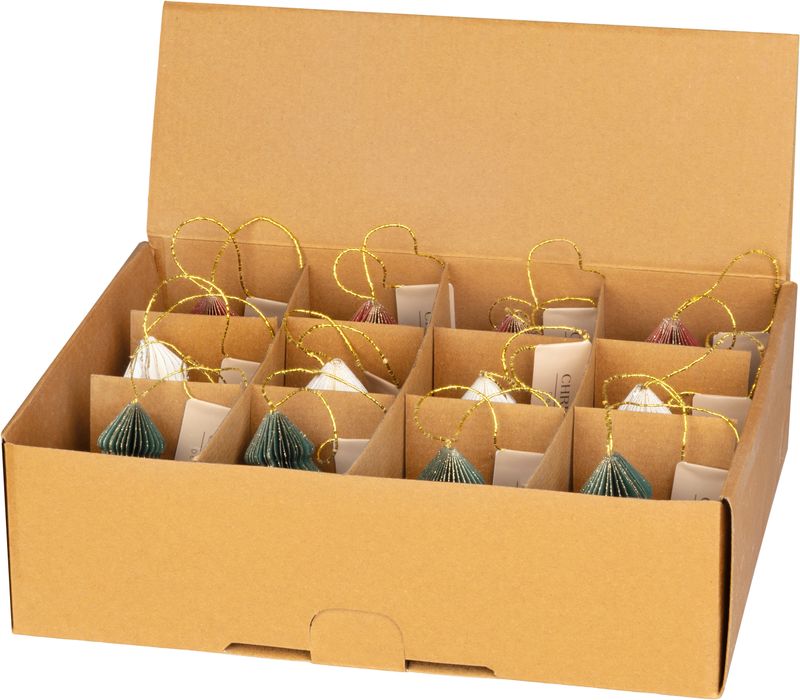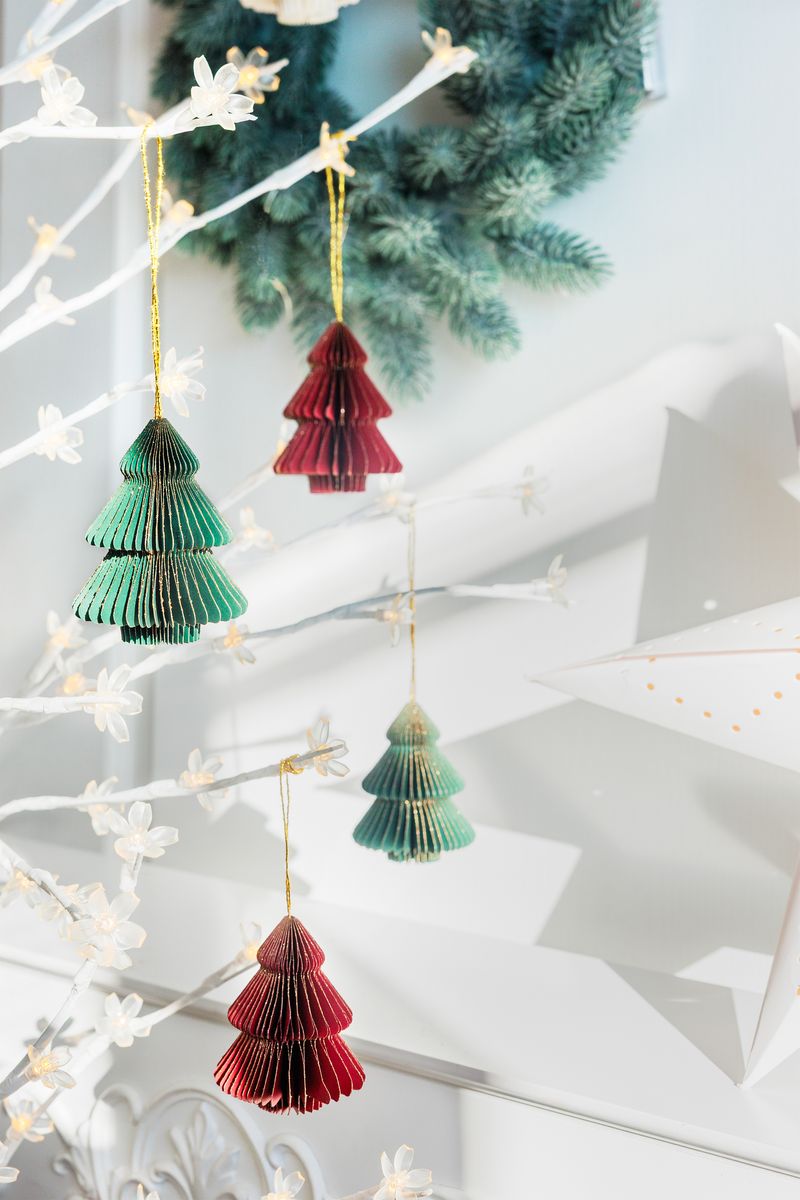 Vytvorte si jedinečnú vianočnú atmosféru s elegantnými papierovými dekoráciami v tvare stromčeka. Tieto ľahké a štýlové ozdoby sú vyrobené z kvalitného ručného papiera a vynikajú svojou originálnou skladacou štruktúrou, ktorá vytvára 3D efekt.