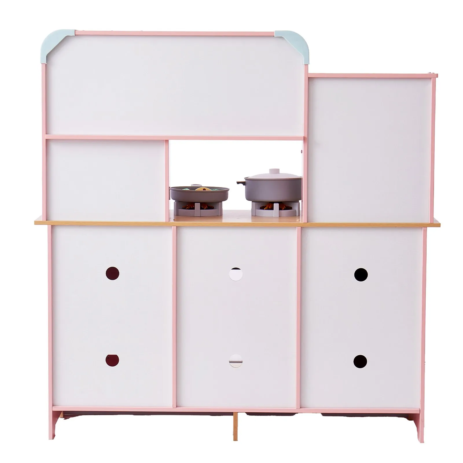 Realistická kuchynská súprava: Ponorte sa do sveta zábavy s našou drevenou kuchynkou na hranie! Táto kuchynka na hranie, navrhnutá tak, aby napodobňovala aktivity v reálnom živote, obsahuje sporák s realistickými svetlami a zvukmi, drez, práčku, rúru, výrobník zmrzliny a mikrovlnnú rúru. Je ideálna na podnietenie kreativity, zlepšenie jemnej motoriky a povzbudenie tímovej práce pri príprave chutných jedál u detí.