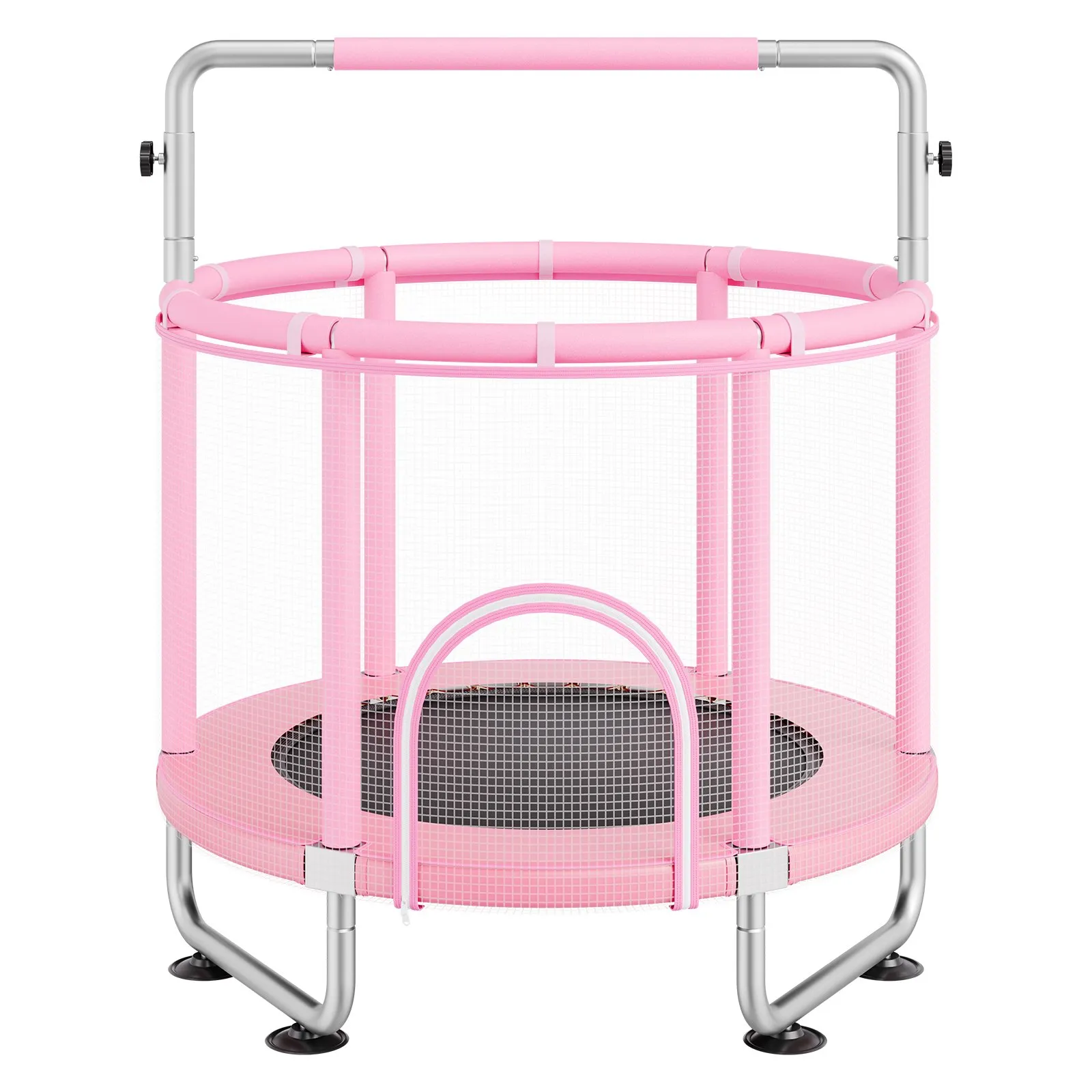3 nastaviteľné výšky: Nastaviteľná rukoväť umožňuje nastavenie výšky 59 palcov (149,86 cm), 60 palcov (152,4 cm) alebo 62 palcov (157,48 cm), vhodné pre deti vo veku od 3 do 12 rokov. Táto vnútorná/vonkajšia batoľacia trampolína efektívne uvoľňuje prirodzenú energiu detí, vďaka čomu je perfektnou hračkou pre celú rodinu. Môže byť inštalovaná v interiéri, exteriéri, na záhrade alebo na dvore.