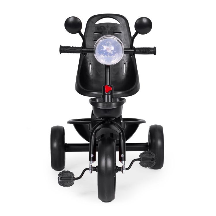 Táto trojkolka je perfektným riešením pre deti vo veku od 6 mesiacov do 6 rokov. Jej pevná oceľová konštrukcia zaisťuje bezpečnosť a odolnosť , zatiaľ čo poťah z oxfordskej látky zaisťuje pohodlie počas používania. Odolné kolesá z EVA peny sú odolné voči prepichnutiu, vďaka čomu je vhodná na jazdu v interiéri aj exteriéri. Jednou z kľúčových vlastností tohto modelu je 360-stupňové otočné sedadlo , ktoré umožňuje dieťaťu sedieť buď v smere jazdy, alebo v smere jazdy. Pre najmenšie deti, ktoré vyžadujú neustály očný kontakt so svojím opatrovateľom, je možnosť sedadla otočeného v smere jazdy mimoriadne užitočná. Ako dieťa rastie, možnosť otáčať sedadlo v smere jazdy umožňuje komplexnejšie objavovanie okolitého sveta. Trojkolka je vybavená päťbodovým bezpečnostným pásom a bezpečnostnými zábradliami, ktoré zabraňujú pádu dieťaťa zo sedadla. Skladacia strieška poskytuje ochranu pred slnkom a dažďom a skladacie opierky nôh sú ideálne pre batoľatá, ktoré ešte nedosiahnu na pedále. Rukoväť s funkciou riadenia navyše poskytuje rodičom plnú kontrolu nad smerom jazdy. V zadnej časti bicykla sa nachádza praktický košík na príslušenstvo alebo hračky, čo je neuveriteľne užitočné počas prechádzok. Rukoväť má navyše malé vrecko , do ktorého sa zmestí telefón, peňaženka alebo kľúče.