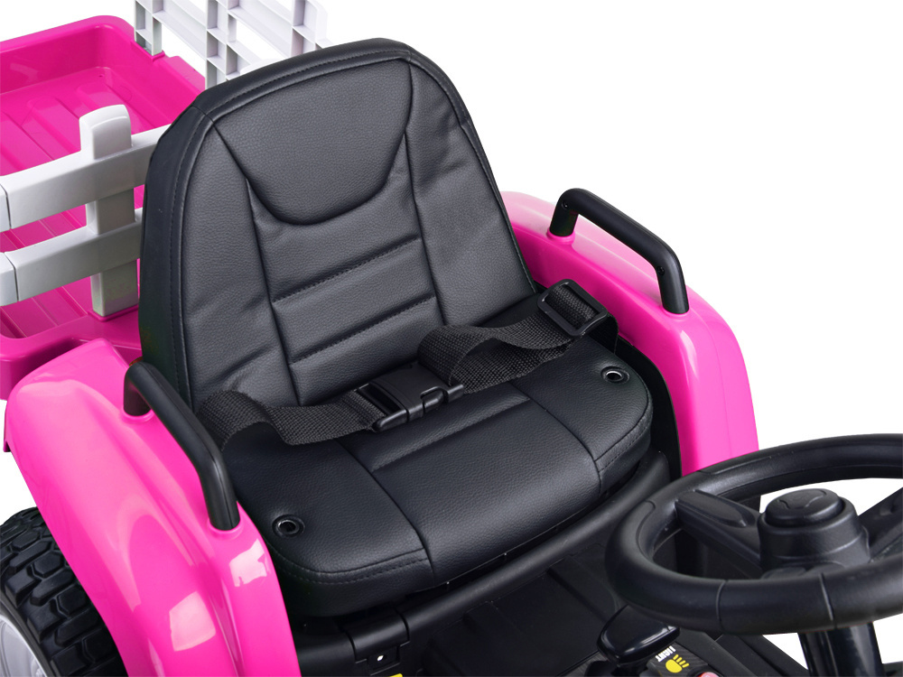 Detský elektrický traktor s odopínacou vlečkou je pre všetky deti do 30 kg . Penové Eva kolesá sú tiché a prispôsobia sa rôznym typom terénu. Dieťa sa usadí do pohodlne tvarovaného sedadla z mäkkej ekologickej kože. Jazdu spríjemnia zvukové a svietiace efekty.