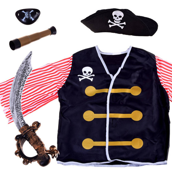 Táto výrazná sada je ideálna na domáce oslavy, karneval alebo Halloween. Kostým je krásne vyrobený s dôrazom na detail a poteší každého malého piráta. Sada obsahuje skladací ďalekohľad. Kostým je vhodný pre deti od 3 rokov.