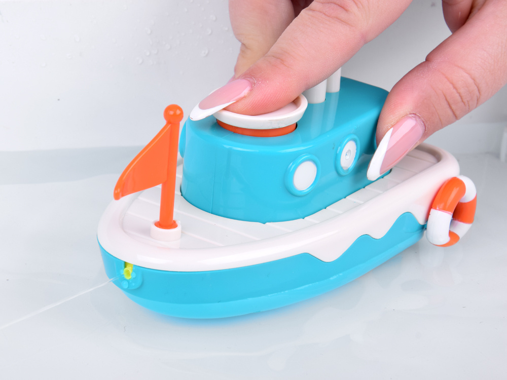 Hračka je vyrobená z odolného plastu v jemných pastelových farbách. Pod ňou sa nachádza gombík – keď ju natiahnete, loď sa začne pohybovať po vode.