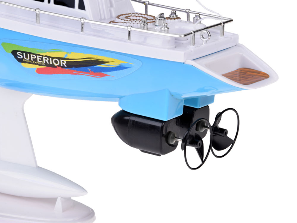 Diaľkové ovládanie : Jachta sa ovláda rádiovým diaľkovým ovládačom. Diaľkové ovládanie má tlačidlá na ovládanie pohybu jachty dopredu, dozadu, doľava a doprava.