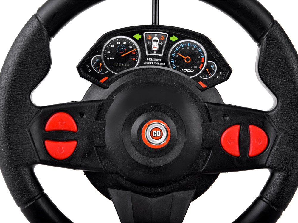 Toto diaľkovo ovládané športové auto s volantom a pedálmi vám poskytne hodiny neuveriteľnej zábavy. Jeho futuristický, aerodynamický dizajn určite poteší každého nadšenca pretekov. Ako skutočné športové auto sa vyznačuje nízkym odpružením, spojlerom a predným osvetlením. Vodič má plnú kontrolu nad vozidlom pomocou diaľkového ovládača v tvare volantu. Diaľkové ovládanie v tvare volantu je veľmi intuitívne a pohodlne padne do ruky. Jazdu je možné ovládať aj pomocou pedálov pripevnených k volantu, ktoré ovládajú jazdu dopredu a dozadu. Sadu dopĺňajú semafory, vďaka čomu je hra ešte pútavejšia.