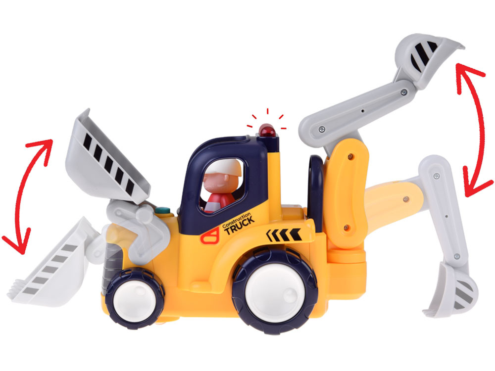 • Predná lyžica – Manuálne posúvajte a upravujte lyžicu vozidla, aby ste aktivovali realistické zvuky motora a ďalšie zvuky, ktoré plne napodobňujú prevádzku skutočného stavebného vozidla.