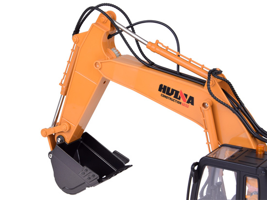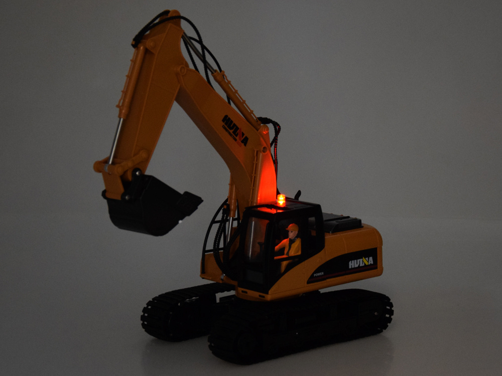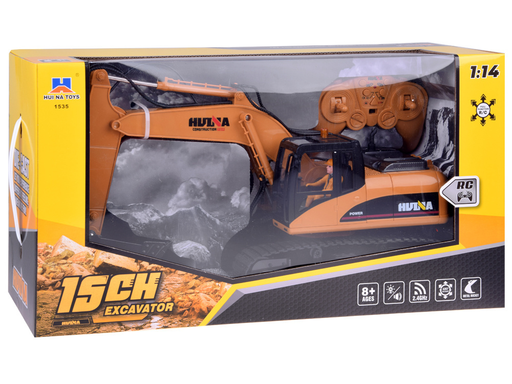 Toto diaľkovo ovládané rýpadlo je stavebné vozidlo pre deti . Rýpadlo je starostlivo vyrobené s dôrazom na detail, aby realisticky pripomínalo skutočné stavebné vozidlo. Má plný rozsah pohybu, kabína sa otáča o 585 stupňov a lyžica sa pohybuje hore, dole, doľava a doprava. Toto realistické, veľké diaľkovo ovládané rýpadlo je v mierke 1:14. Farba dokonale odráža skutočné stavebné zariadenie. Rýpadlo sa ovláda pomocou diaľkového ovládača s frekvenciou 2,4 GHz. Diaľkové ovládanie poskytuje plnú kontrolu nad rýpadlom a všetky úlohy pre mladého operátora a rýpadlo sa vykonávajú bez námahy a pod úplnou kontrolou. Pomocou diaľkového ovládača je možné rýpadlo poháňať dopredu a dozadu, otáčať doľava a doprava a zdvíhať a spúšťať. Počas prevádzky rýpadla sa aktivujú zvukové a svetelné efekty, ktoré je možné aj vypnúť. Vozidlo sa pohybuje po mäkkých plastových koľajniciach. Rýpadlo je napájané priloženou batériou. Spárovanie vozidla s diaľkovým ovládačom je automatické. Funkcie diaľkového ovládania: – otáčanie kabíny doprava/doľava – otáčanie pásov doprava/doľava – otváranie/zatváranie lyžice – pohyb ramena hore/dole – zastavenie práce – osvetlenie rýpadla – zvuky rýpadla – pohyb ramena hore/dole – tlačidlo DEMO