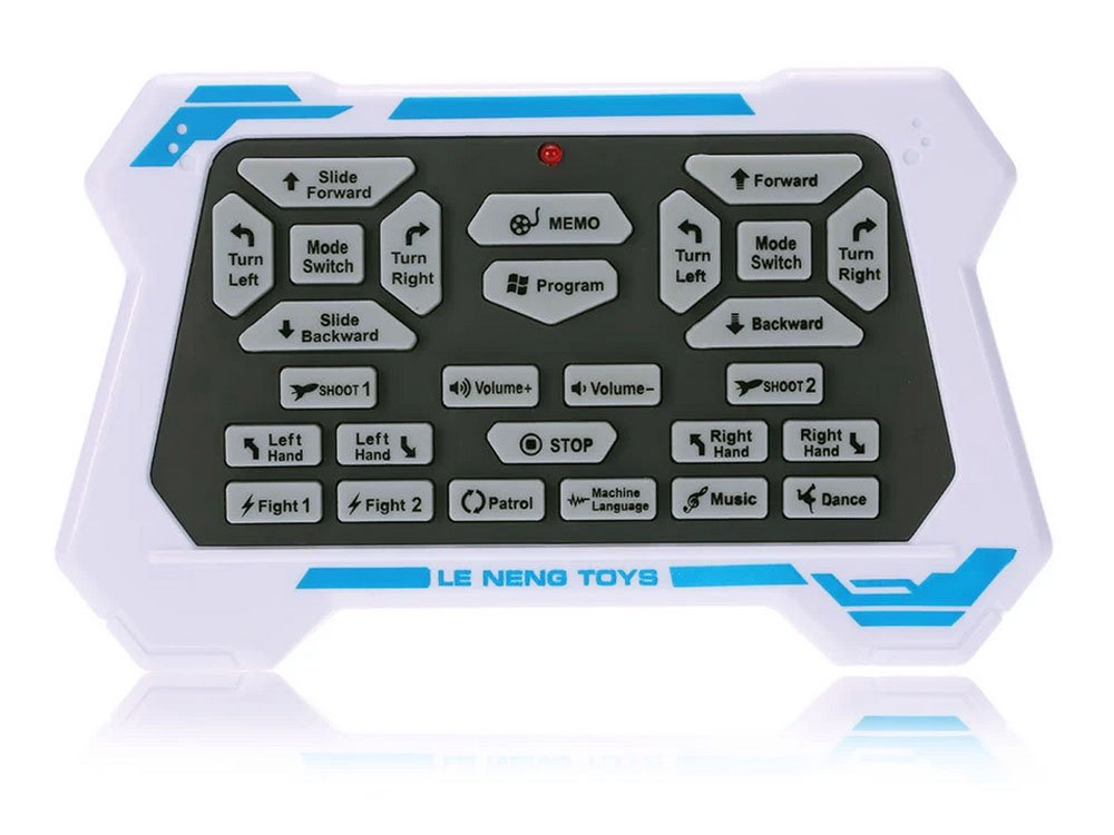 Tento robot na diaľkové ovládanie je úžasná hračka, ktorá určite poteší každé dieťa a poskytne mu hodiny kreatívnej hry. Robot sa ovláda diaľkovým ovládačom, ktorý mu umožňuje pohybovať sa všetkými smermi, dopredu a dozadu, otáčať sa doľava a doprava, šmýkať sa, spievať, hovoriť robotickým jazykom a tancovať. Má viacúrovňové ovládanie hlasitosti a demo program, ktorý vám umožní vidieť jeho schopnosti. Zvukové efekty sú prispôsobené každému pohybu robota. Robot nevyžaduje batérie; má vstavanú nabíjateľnú batériu, ktorú je možné nabíjať napríklad cez počítač pomocou priloženého USB kábla. Batéria výrazne znižuje prevádzkové náklady a umožňuje dlhšie zábavu. Na zadnej strane robota sa nachádza tlačidlo zapnutia/vypnutia , ktoré ho zapína a vypína, zatiaľ čo na prednej strane tela je tlačidlo na prepnutie do režimu spánku. Keď je hračka zapnutá, oči a ruky robota sa rozsvietia pomocou LED technológie.