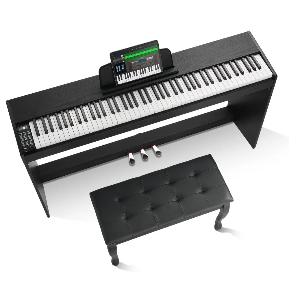 - 88-klávesová klaviatúra s váženými tónmi: Toto plne vážené digitálne piano s 88 klávesmi má 88 klávesov. Každý kláves je individuálne vážený a postupne sa zoslabuje od basov po výšky. Klávesnica sa cíti podobne ako akustické piano. Vhodná pre profesionálnych hráčov a pokročilých študentov, umožňuje vám hrať nebeskú hudbu!
