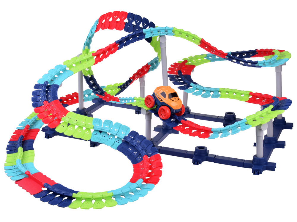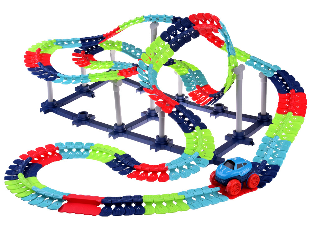Sada obsahuje 291 dielikov, ktoré vám umožnia postaviť dráhu s dĺžkou až 580 cm . Dráhu si môžete postaviť podľa vlastných predstáv alebo sa riadiť priloženým obrazovým návodom. Môžete si vytvoriť krátke, bláznivé dráhy alebo veľké, pôsobivé stavby priamo zo zábavných parkov. Vďaka neobvyklému tvaru spojovacích prvkov sa dráha dá krútiť, meniť a vytvárať bláznivé zákruty.