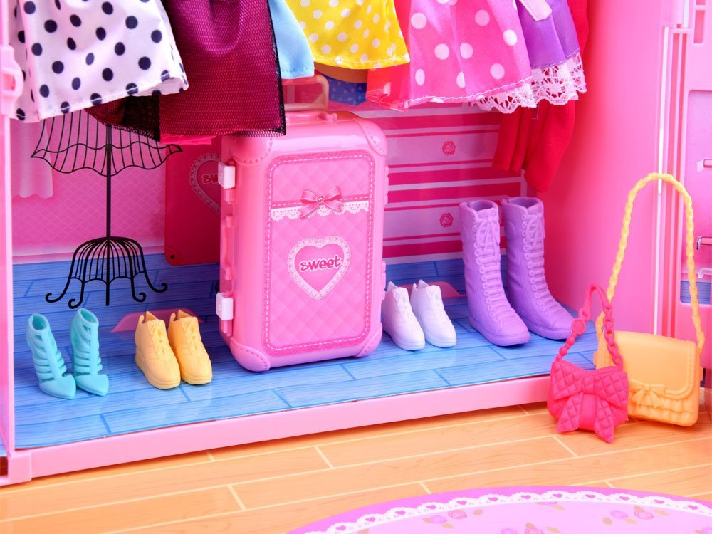 Táto sada bábiky a šatníka vám poskytne aspoň náhľad na tento sen. Tento fantastický domček s vlastnou súkromnou šatňou a šatníkom